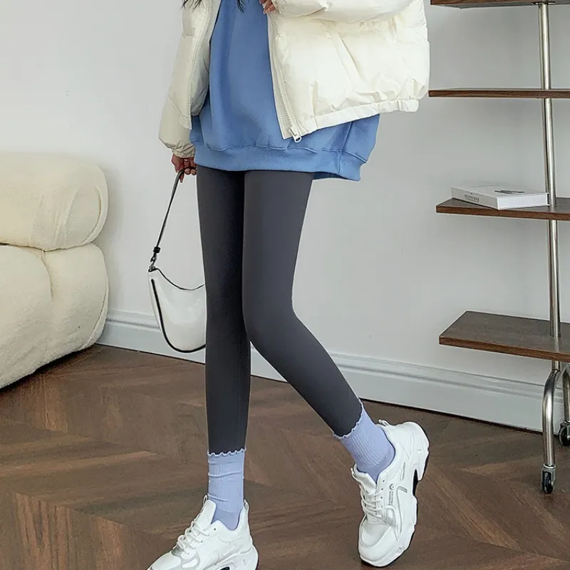ONENINE34PM Серый Розовый Флис Самолет 350 г Женские Леггинсы