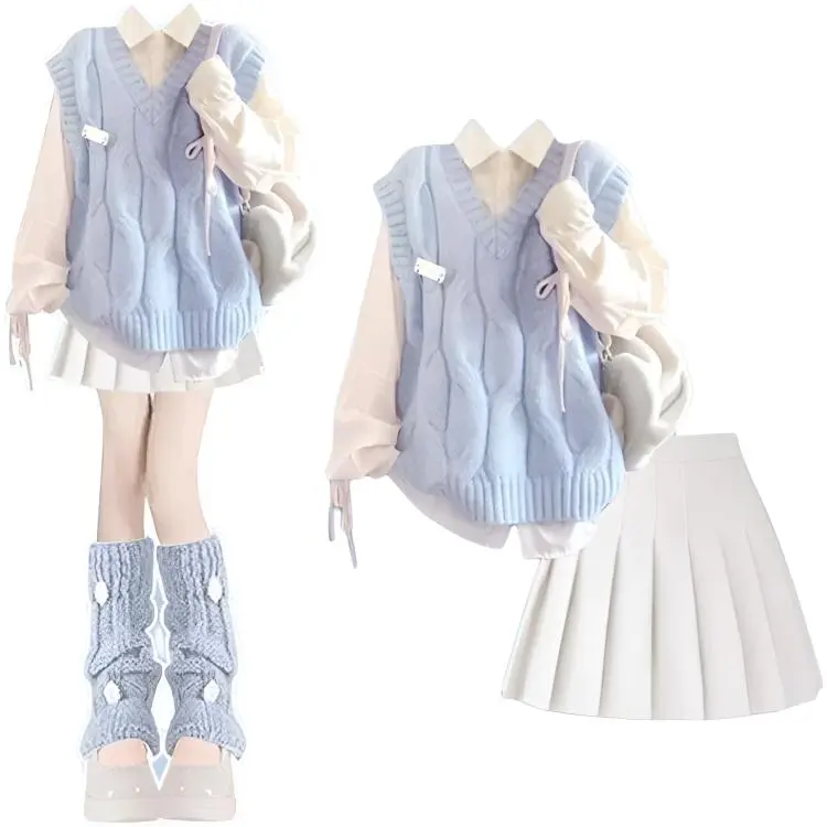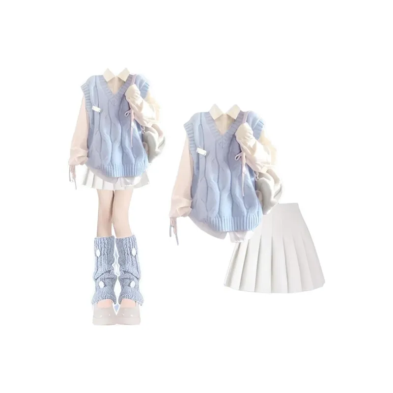 ONENINE34PM Жилет + Шнурок Рубашка + Белая Плиссированная Юбка Комплект из Трех Предметов Женские Юбочные Комплекты