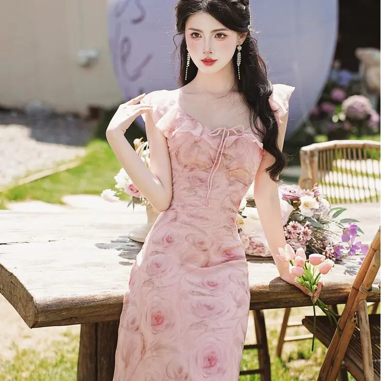 ONNFB Без рукавов Платье Женское Розовое