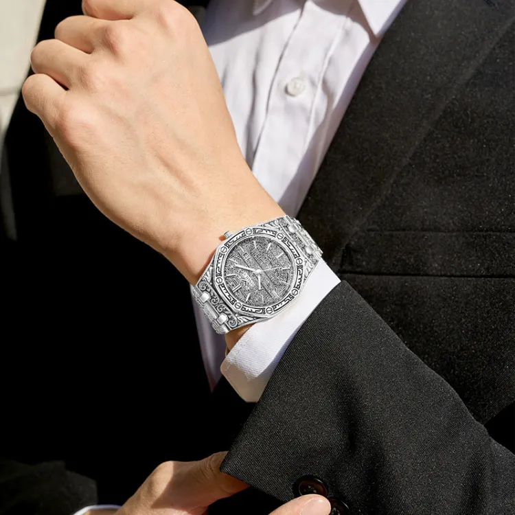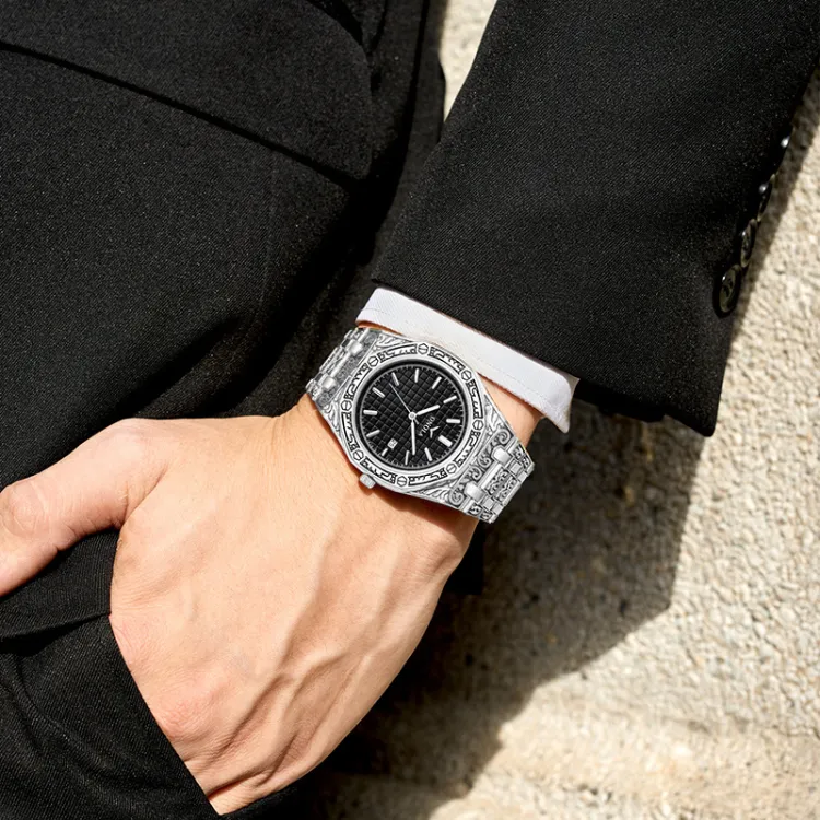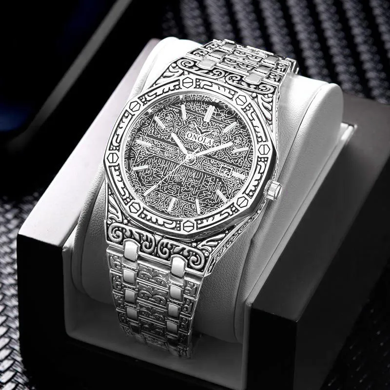 ONOLA Модный Элегантный And Утонченный UNIQUE Премиум Кварцевый механизм Стальной ремешок Мужские часы Золотой циферблат