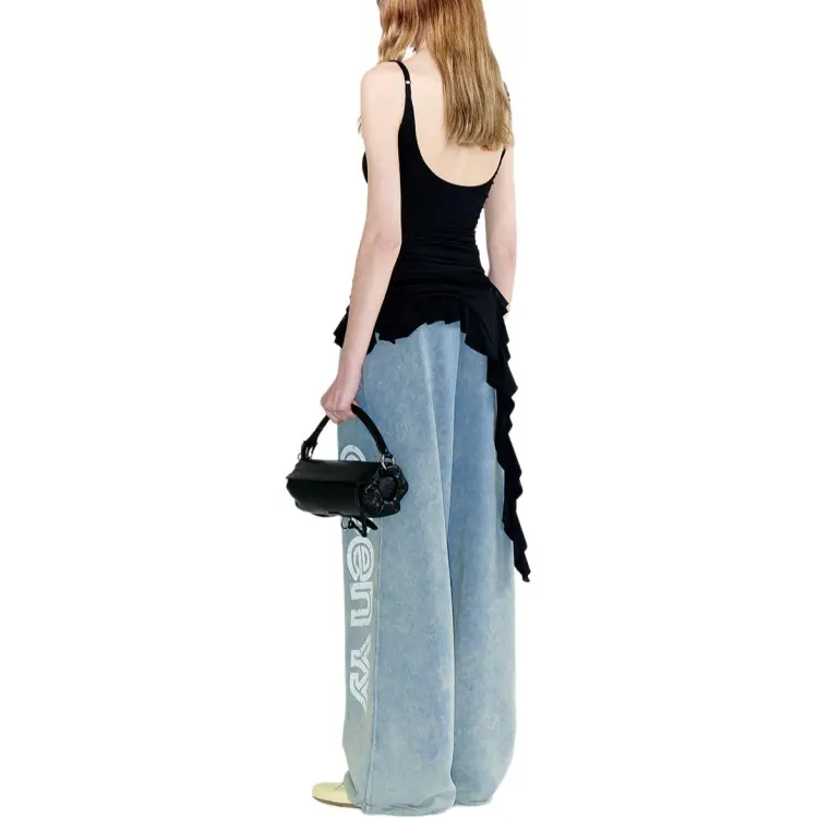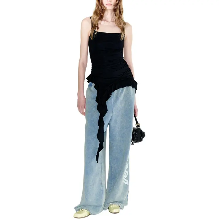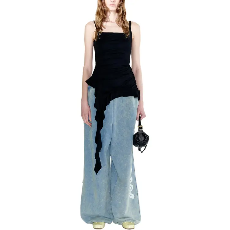 OPEN YY ASYMMETRIC FRILL Майка Топ на бретелях Женская Черный Черный