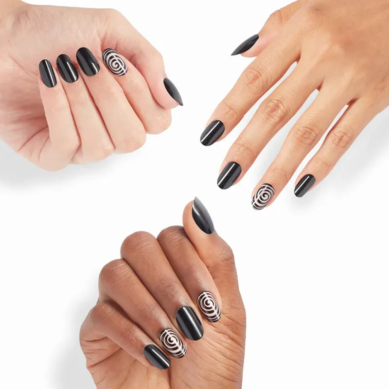 OPI Swirl Next Door False Nail Короткий Круглый Черный Светло-розовый Jump Цвет Однотонный