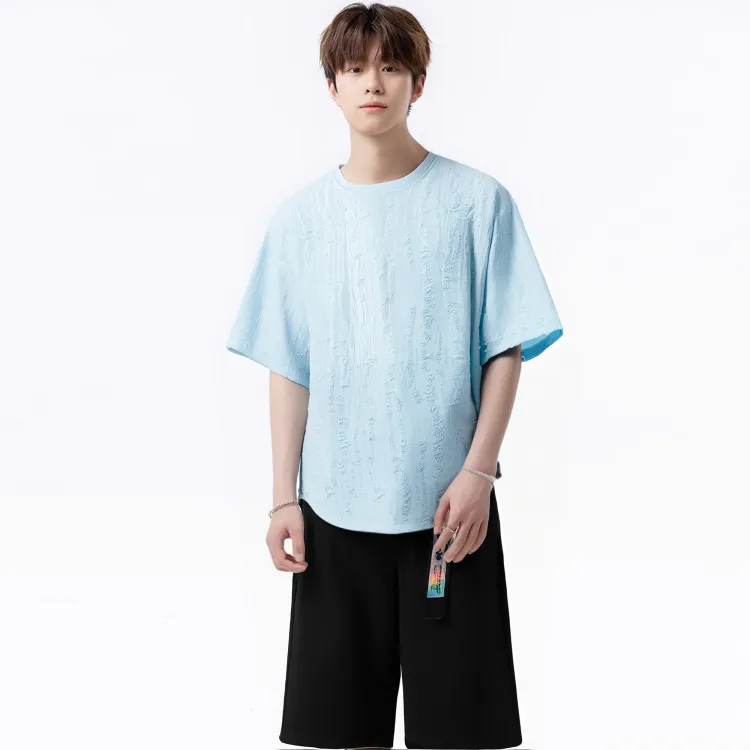 Синий топ + черные шорты