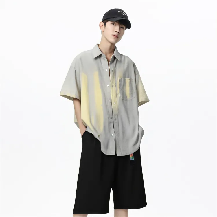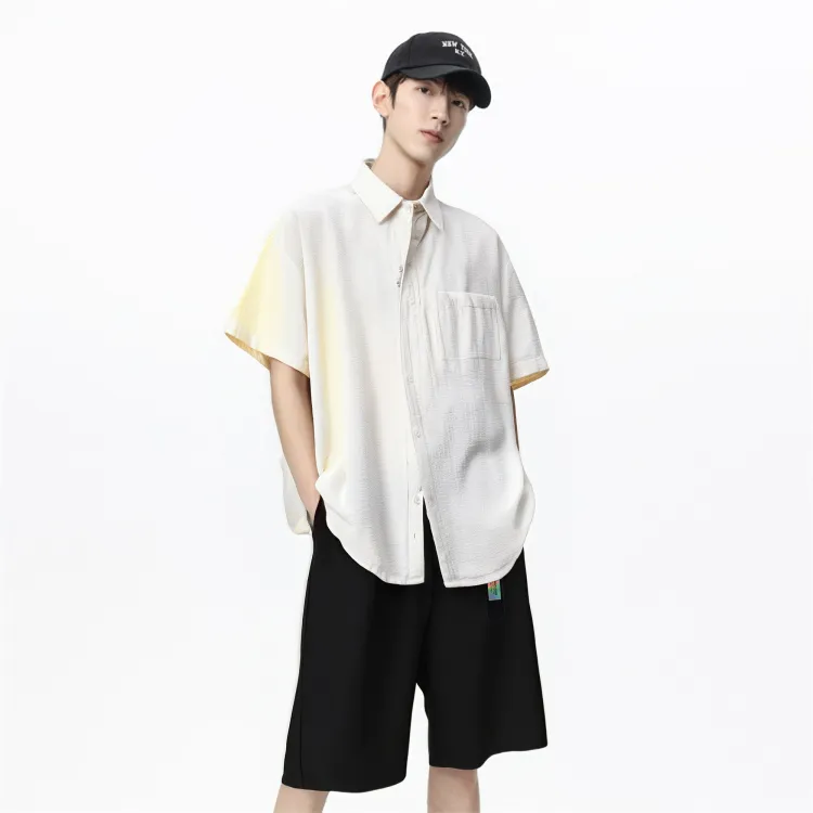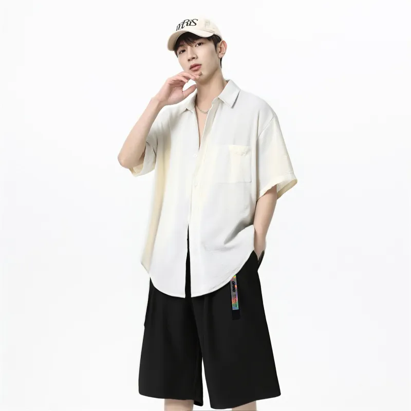 Экрю рубашка + черные шорты