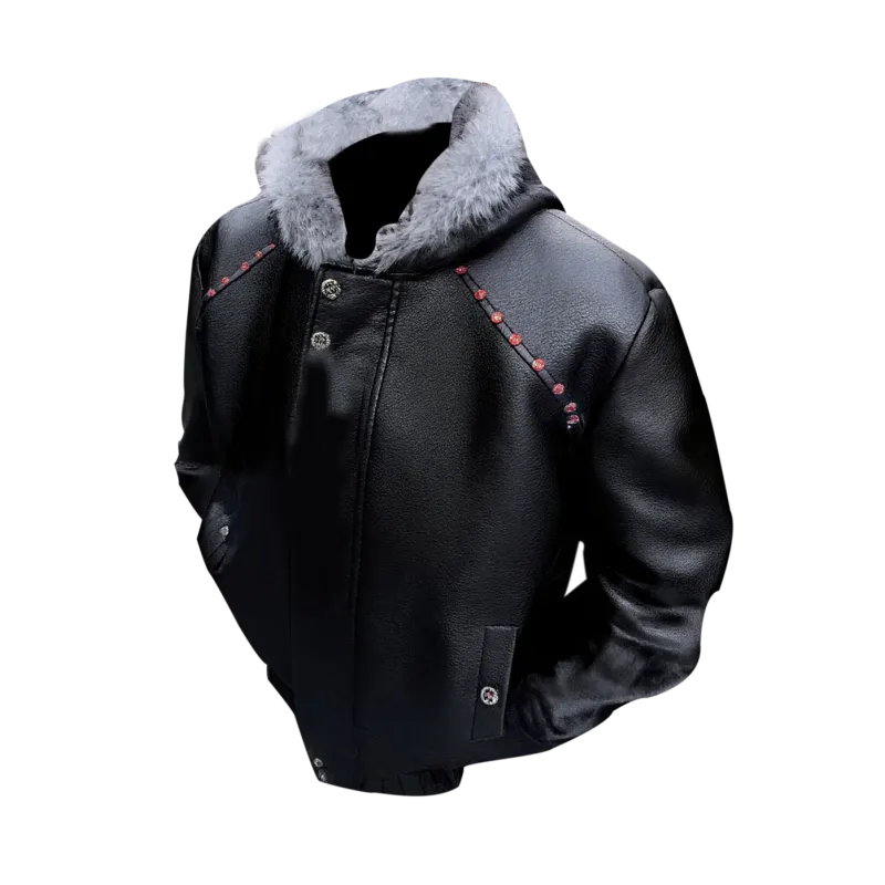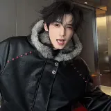 OPMY Черный [Satyr Mountain Fur-Lined Collar Collection] Унисекс Кожаные куртки