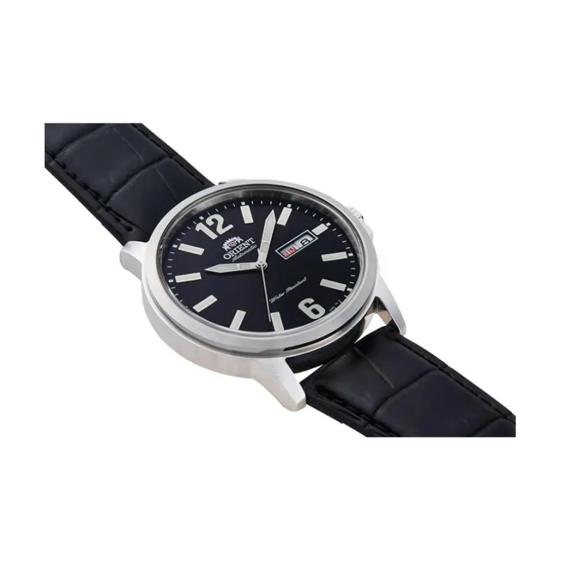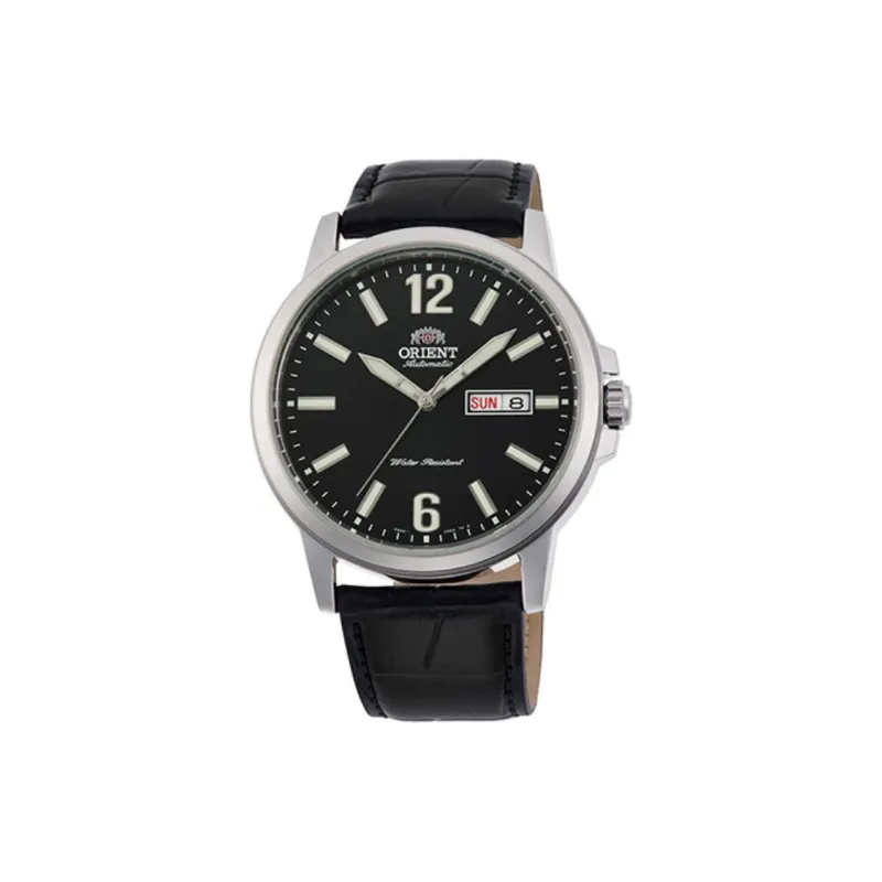 ORIENT Автоматический Ручной Механизм Кожаный Ремешок Часы Мужские Черный Циферблат