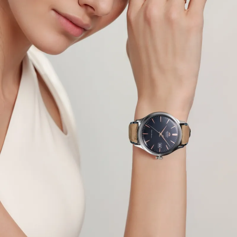 ORIENT Автоматический Механический Механизм Коровья Кожа Ремешок Часы 42 мм Унисекс Черный Циферблат