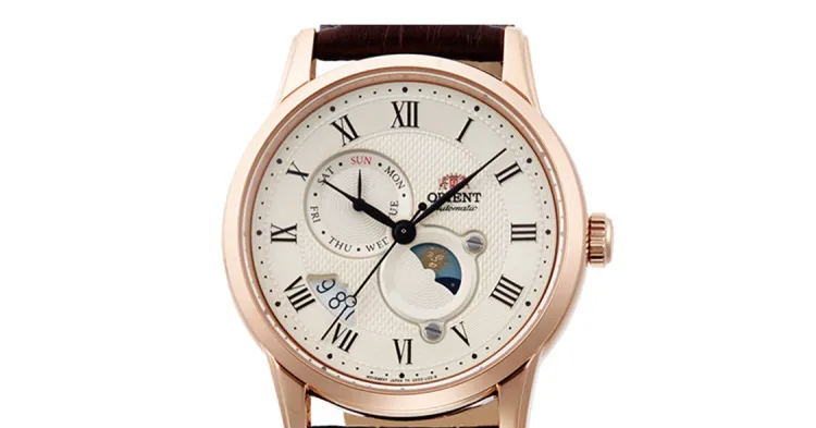 ORIENT Автоматический Механический Механизм Коровья Кожа Ремешок Часы 42,5 мм Мужские Часы Белый Циферблат RA AK0007S