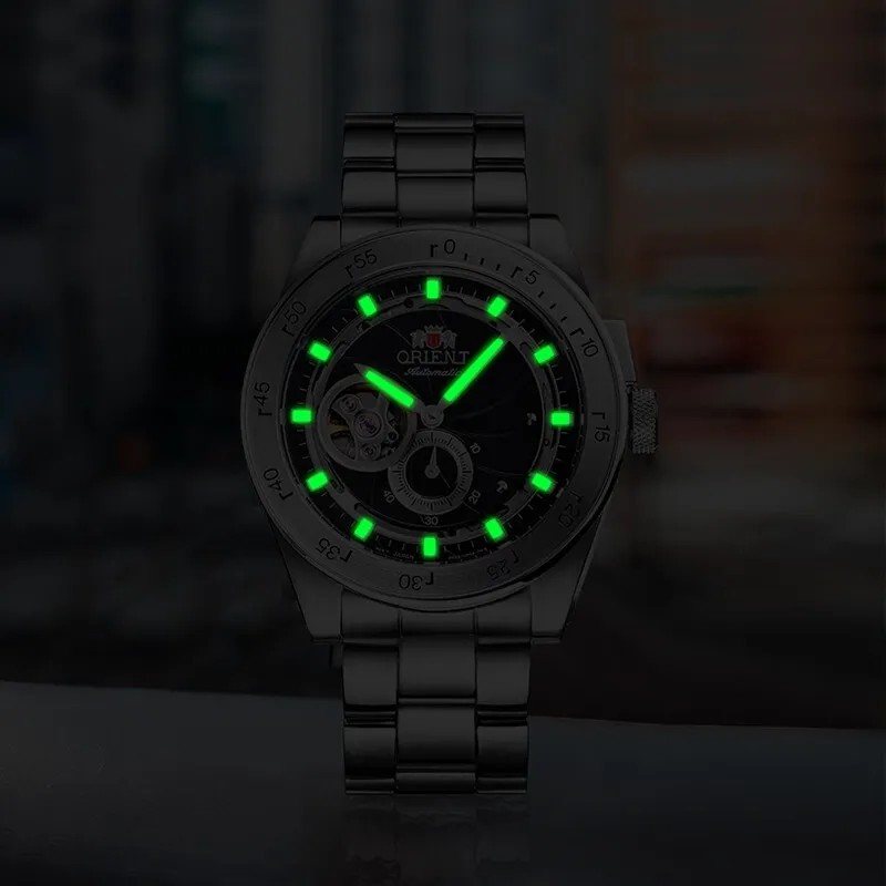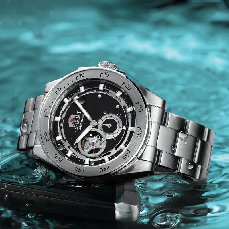 ORIENT Автоматический Механический Механизм Нержавеющая Сталь Ремешок Часы 40,85 мм Мужские Часы Черный Циферблат RA AR0201B