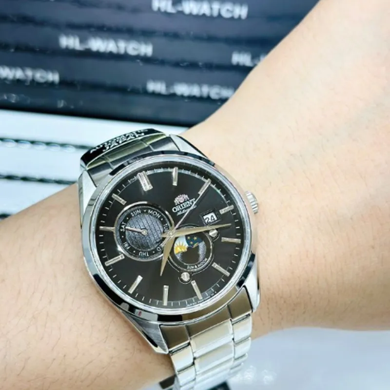 ORIENT Автоматический Механический Механизм Нержавеющая Сталь Ремешок Часы 41,5 мм Мужские Часы Черный Циферблат