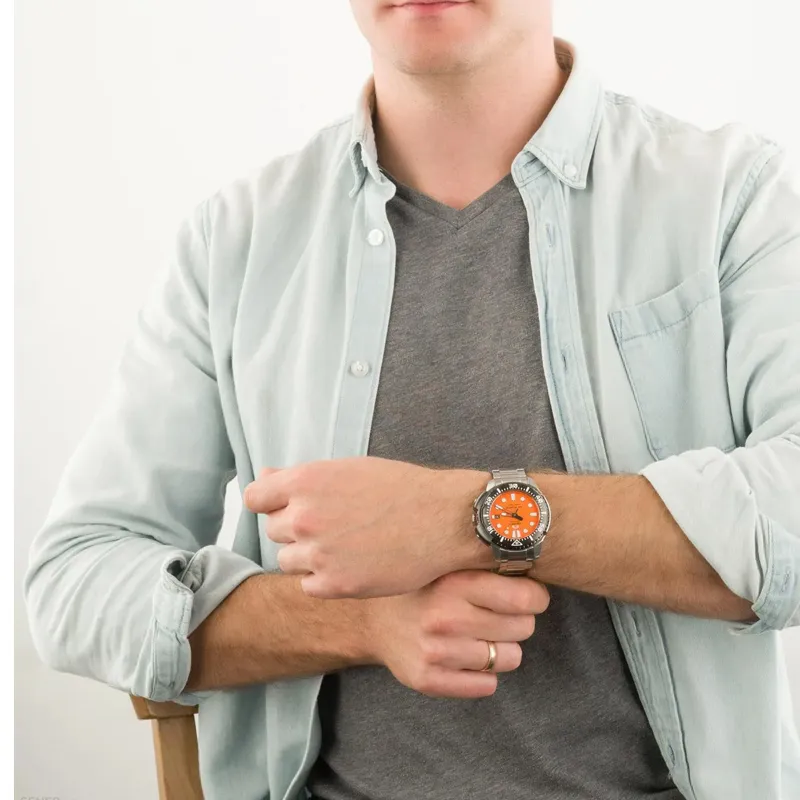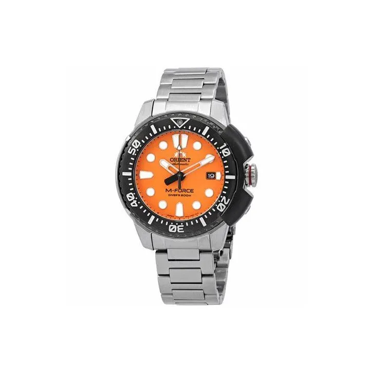 ORIENT Автоматический Механический Механизм Нержавеющая Сталь Ремешок Часы Мужские Апельсин Циферблат Часы RA AC0L08Y00B