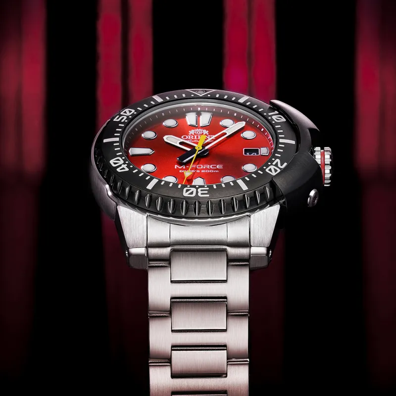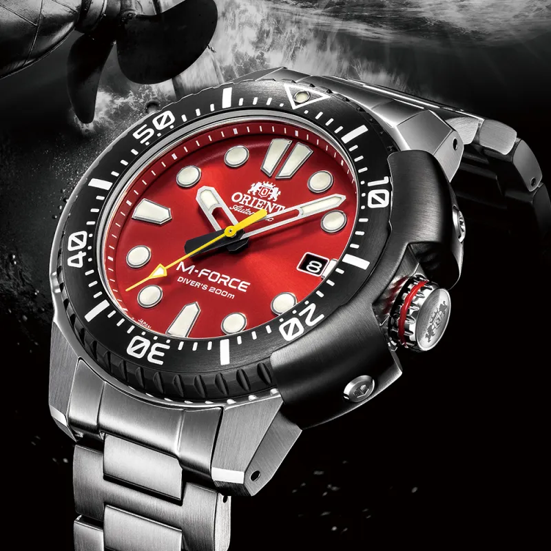 ORIENT Sports Collection Механический механизм часы с ремешком из нержавеющей стали 45 мм мужские красный циферблат модель AC0L02R