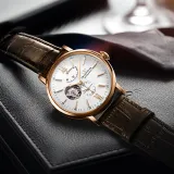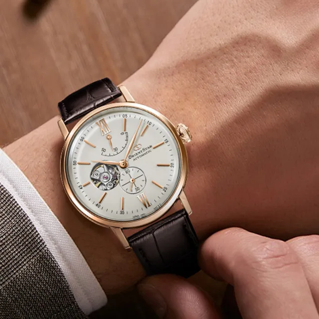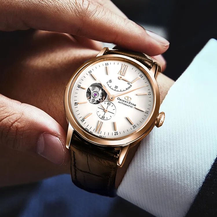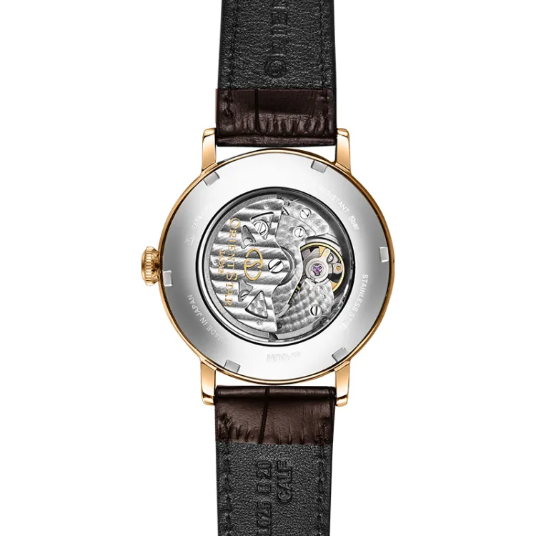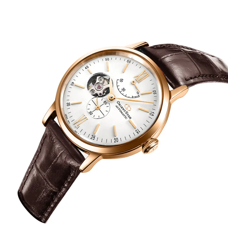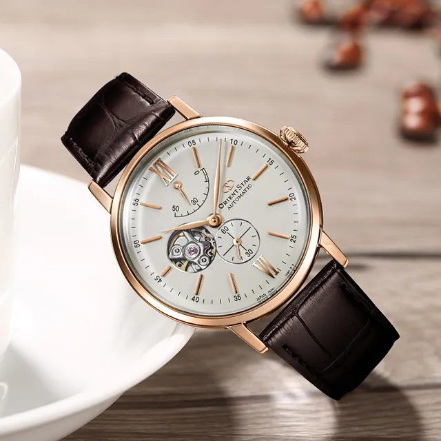 ORIENT STAR Автоматический Механический Механизм Коровья Кожа Ремешок Часы Мужские Белый Циферблат