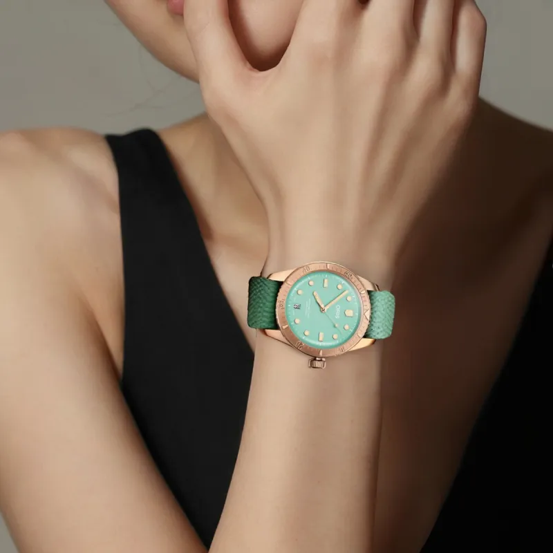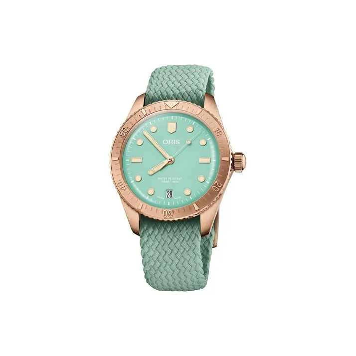 Oris Автоматический Механический Механизм Унисекс Часы 38 мм Зеленый Циферблат Бронзовый Корпус Ткань Ремешок