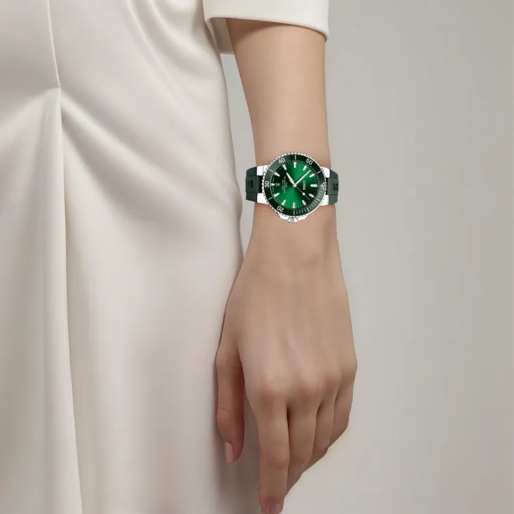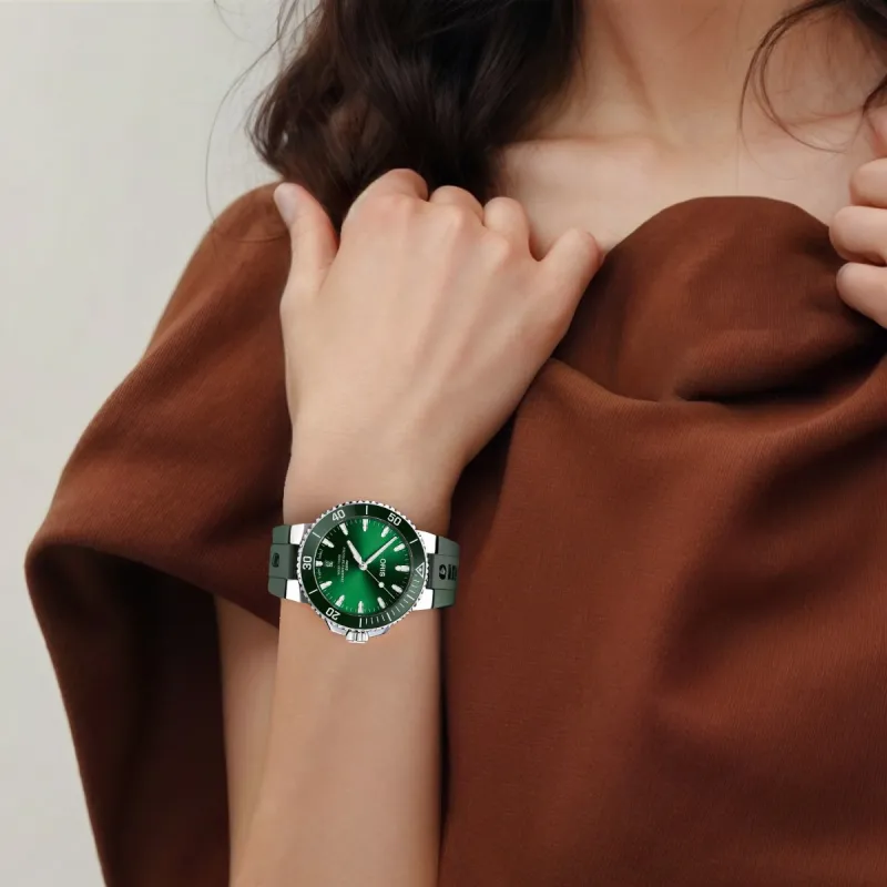 Oris Автоматический Механический Механизм Унисекс Часы 41,5 мм Зеленый Циферблат Нержавеющая Сталь Корпус Резиновый Ремешок