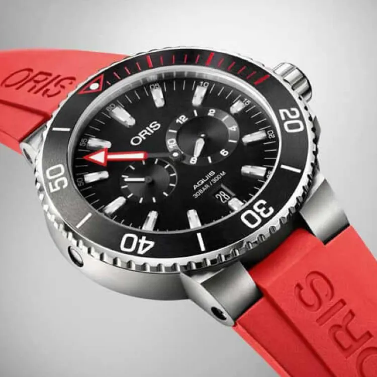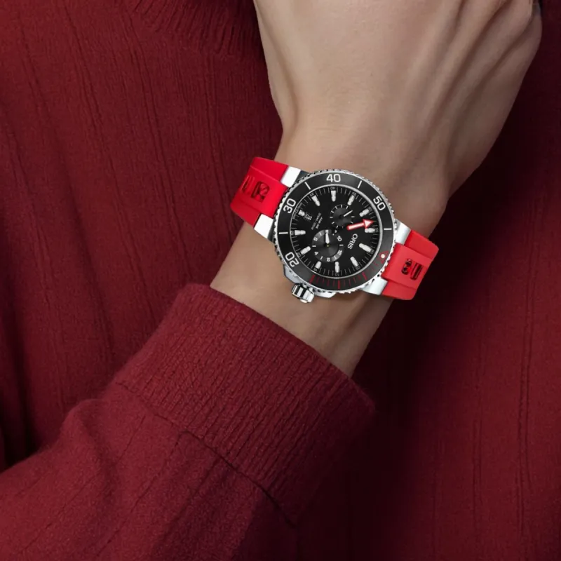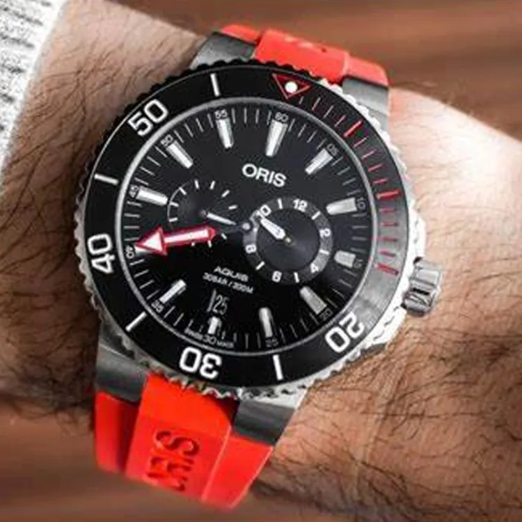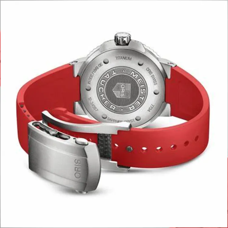 Oris Механический механизм Мужские часы 43,5 мм Черный циферблат Титановый сплав Корпус часов Резиновый ремешок