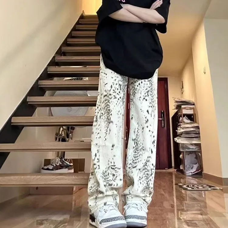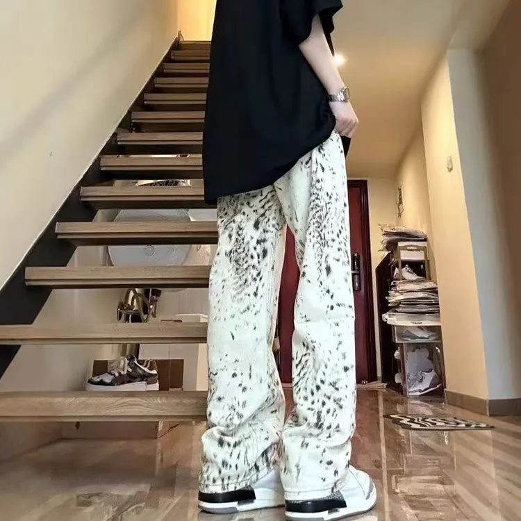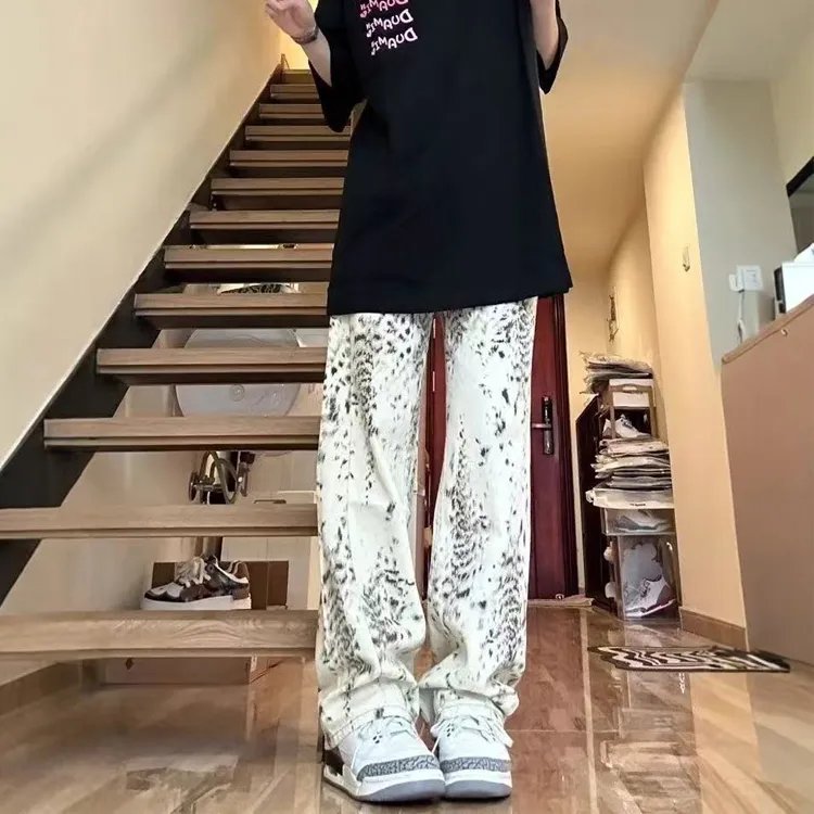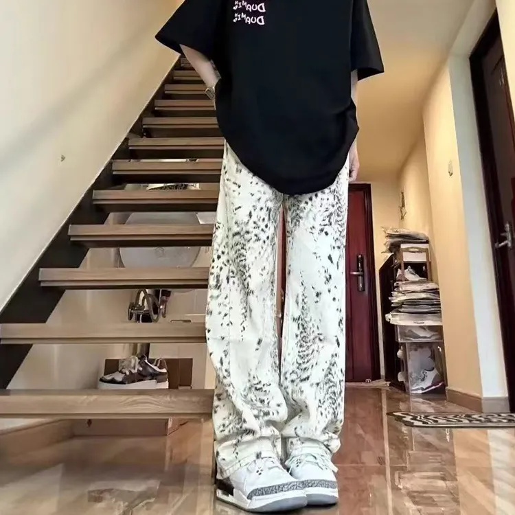 ORMY Абрикос Леопардовый принт Унисекс Джинсы