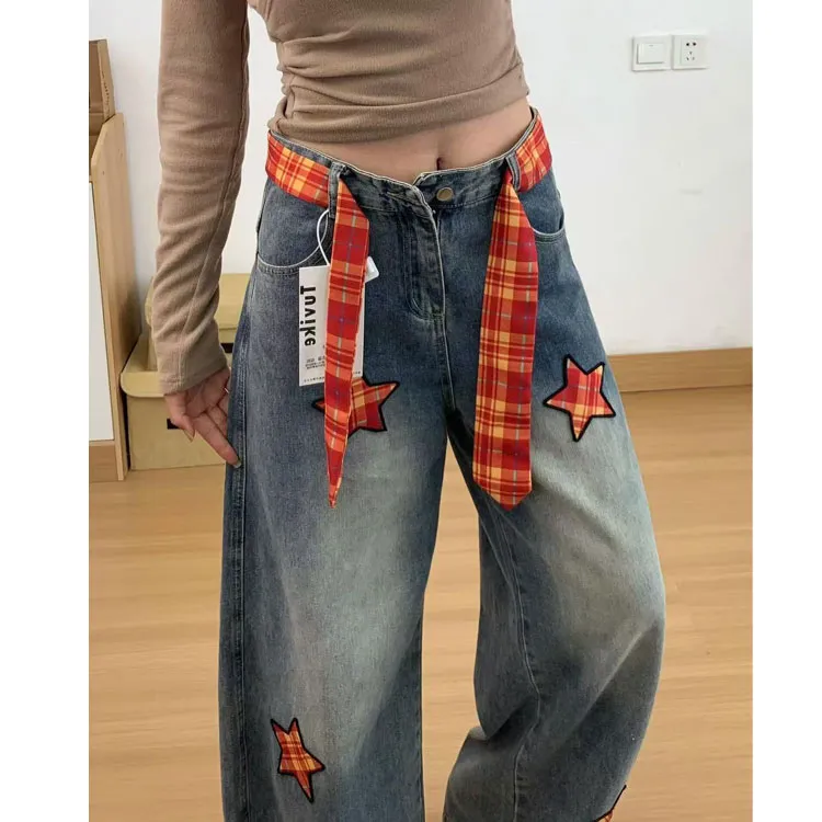 ORMY Винтажный синий включает ремень женские джинсы