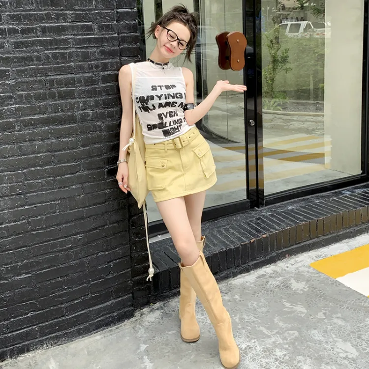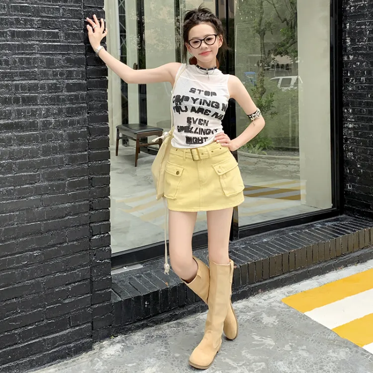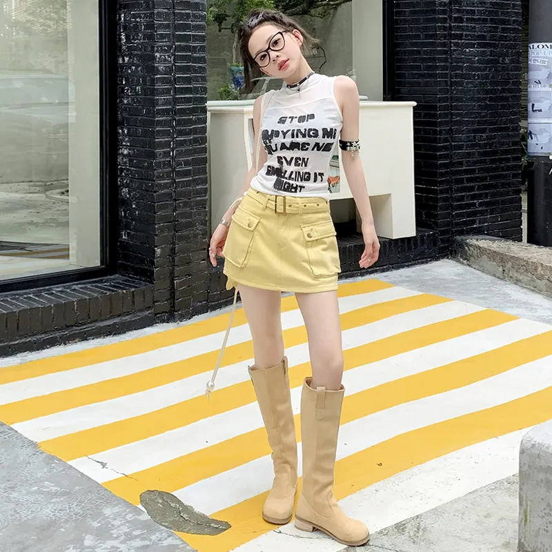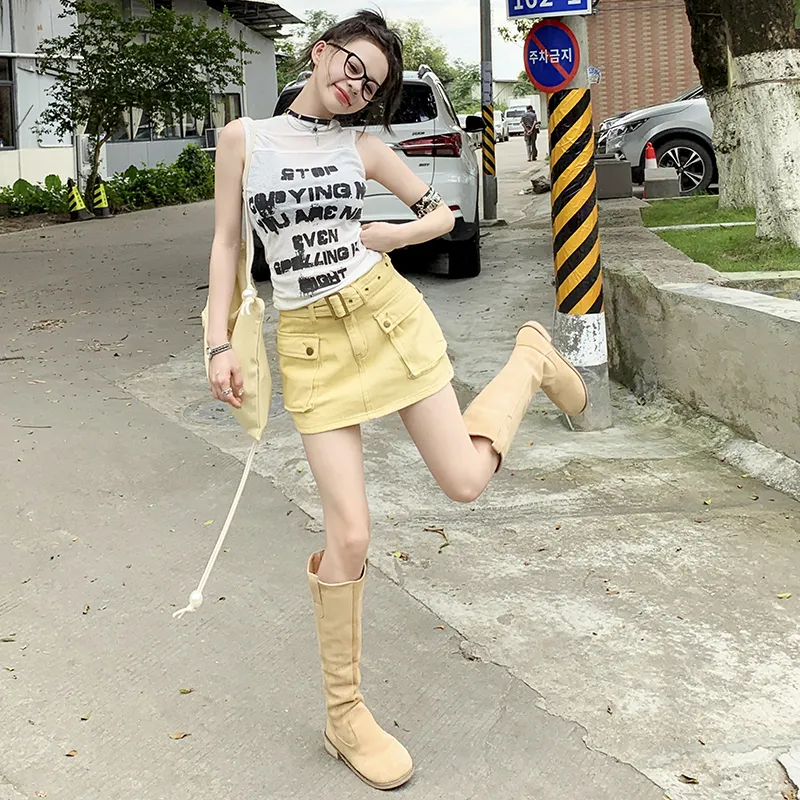 OROI Короткие юбки карго Женские Яично-желтый