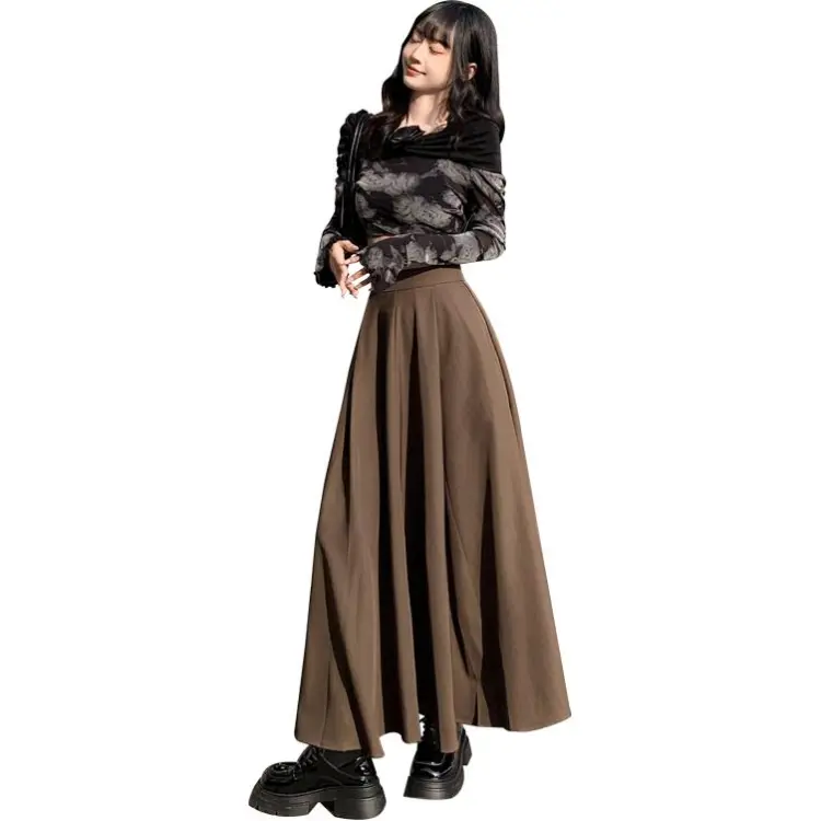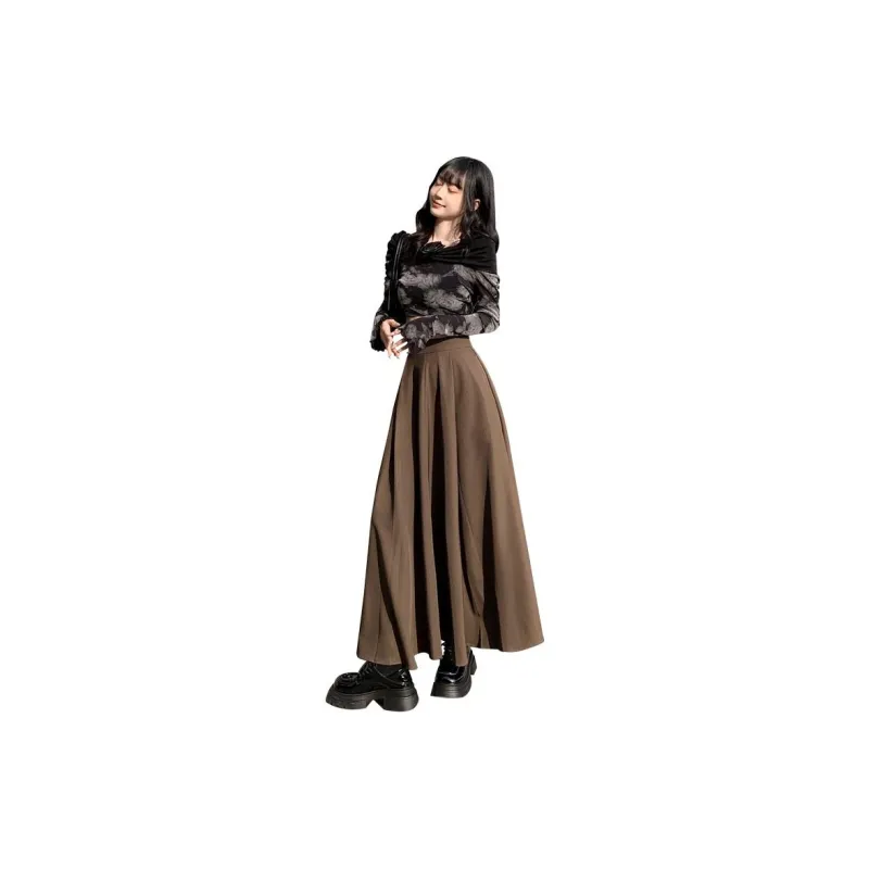 OROI Повседневный Длинный Юбка Женские Коричневый