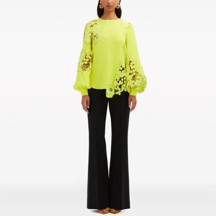 Oscar De La Renta SS24 Рубашка Женская Неоновый Зеленый