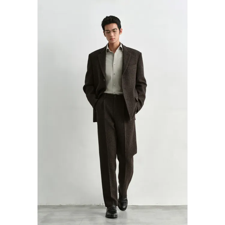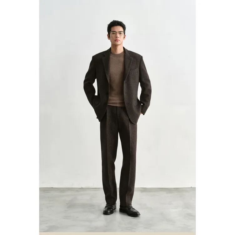 Osens Серый Жаккард 100% Овечья Шерсть Мужские Повседневные Брюки