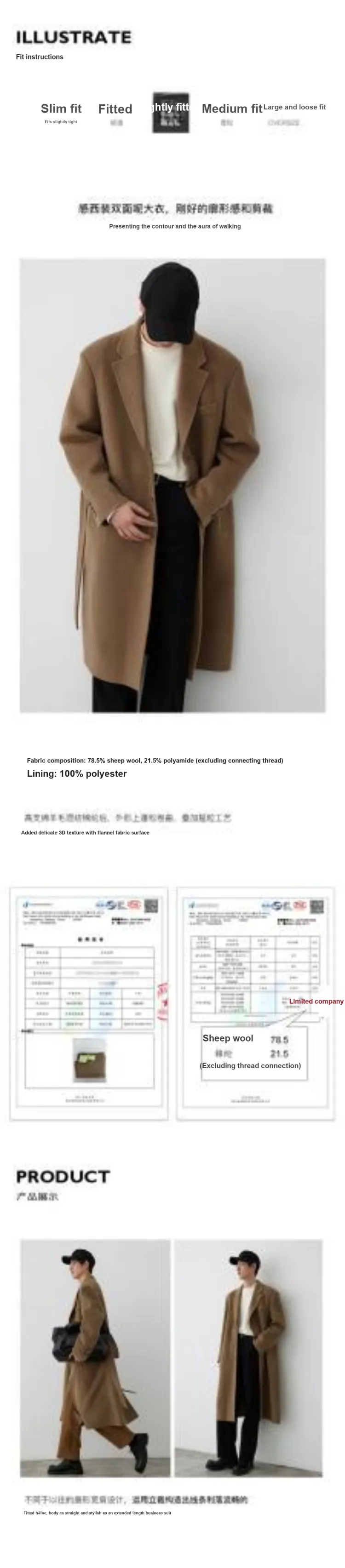 Ткань Состав: 78,5% овечья шерсть, 21,5% полиамид Подкладка: 100% полиэстер
