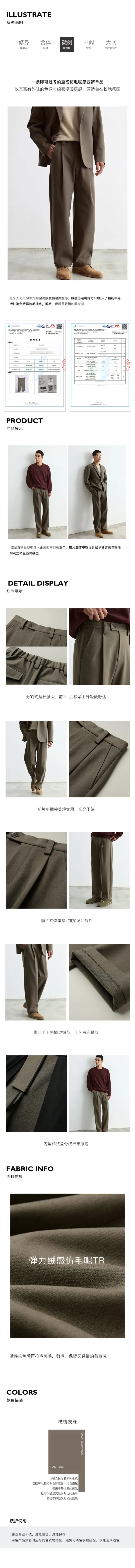 Osens Оливково-серый Зеленый Мужской Костюм Брюки