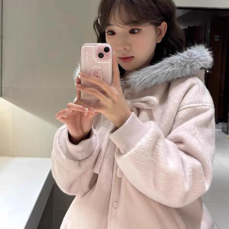 OSQ Розовый Женские Бархатные Куртки