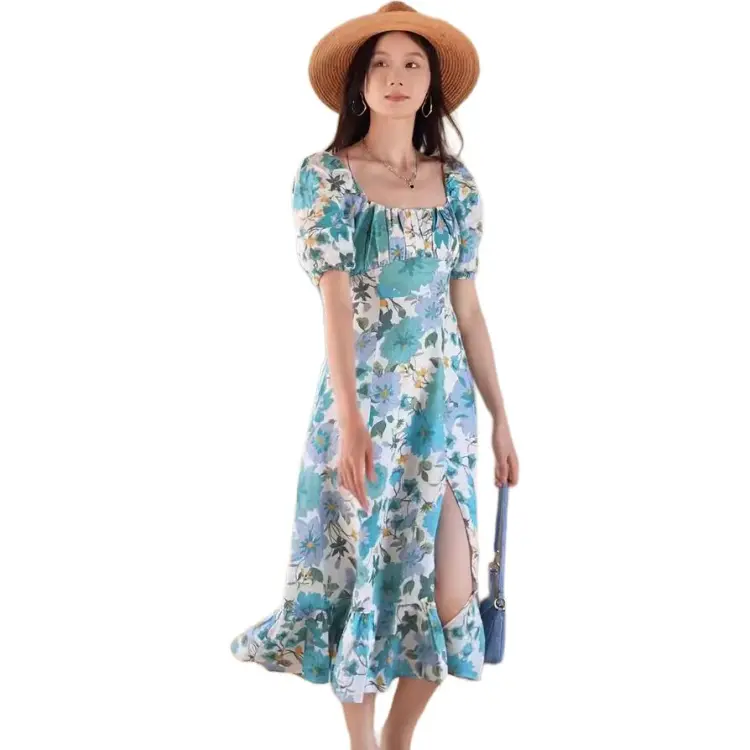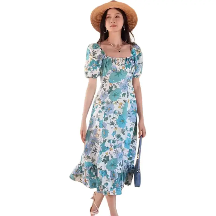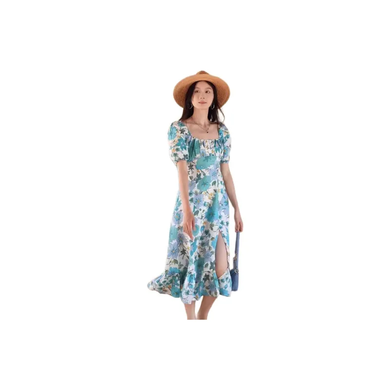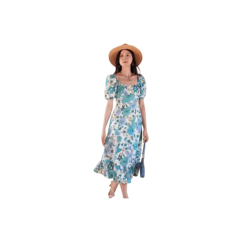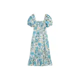 Other Stories Короткий рукав Платье Женское Белое Светло-Синий Цветочный принт