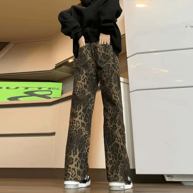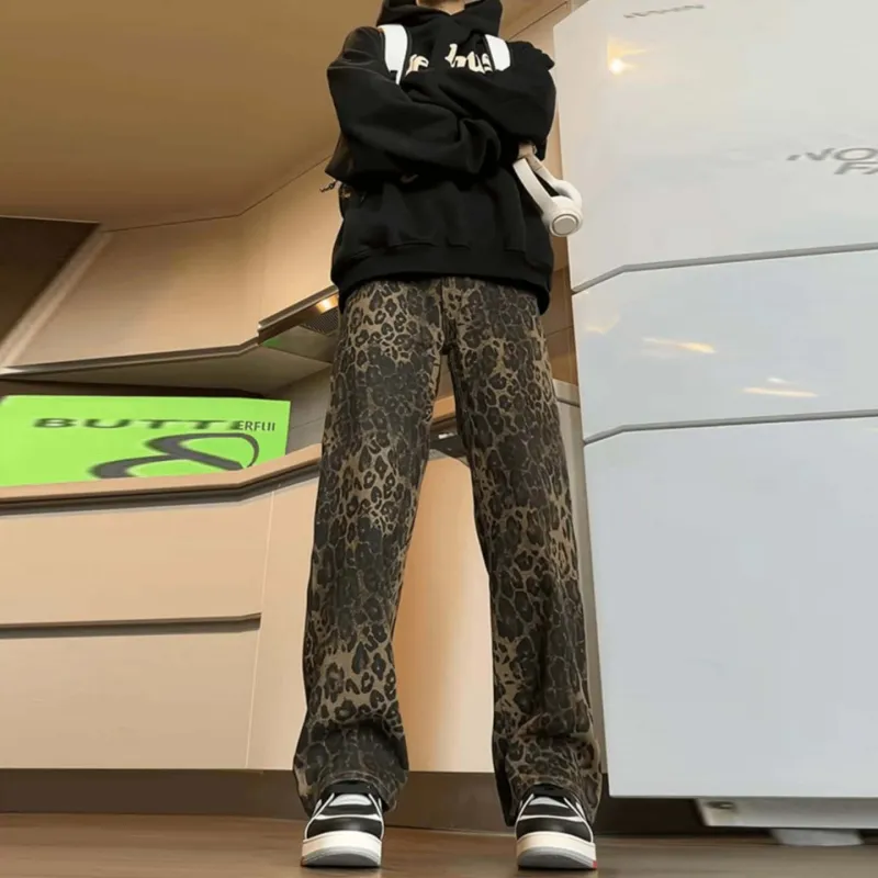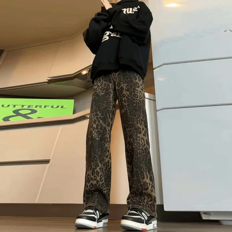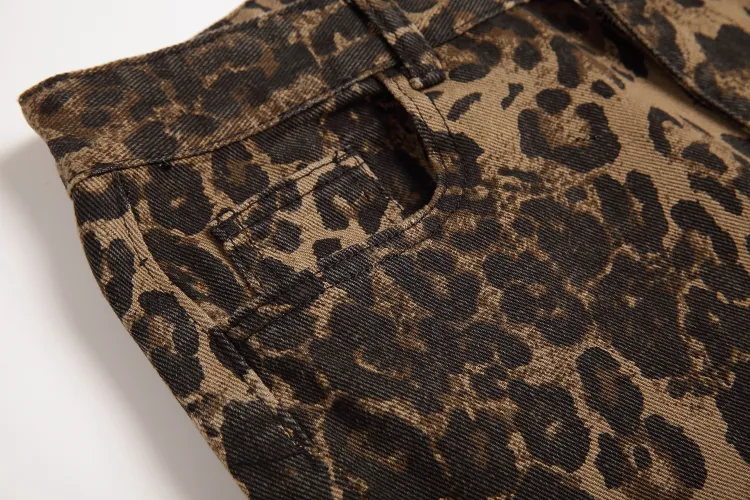 OTKSK Джинсы Унисекс Леопардовый принт