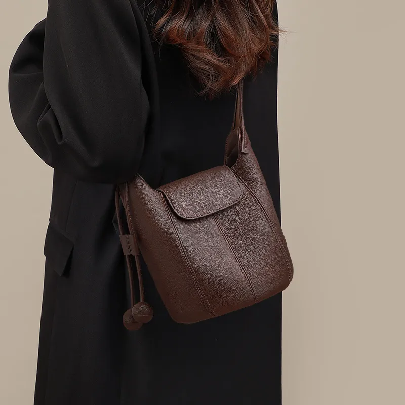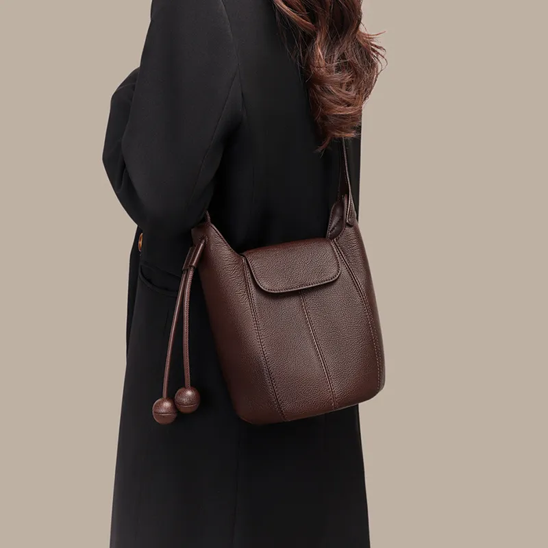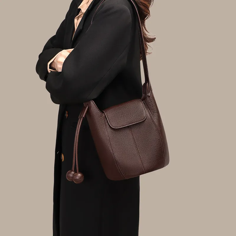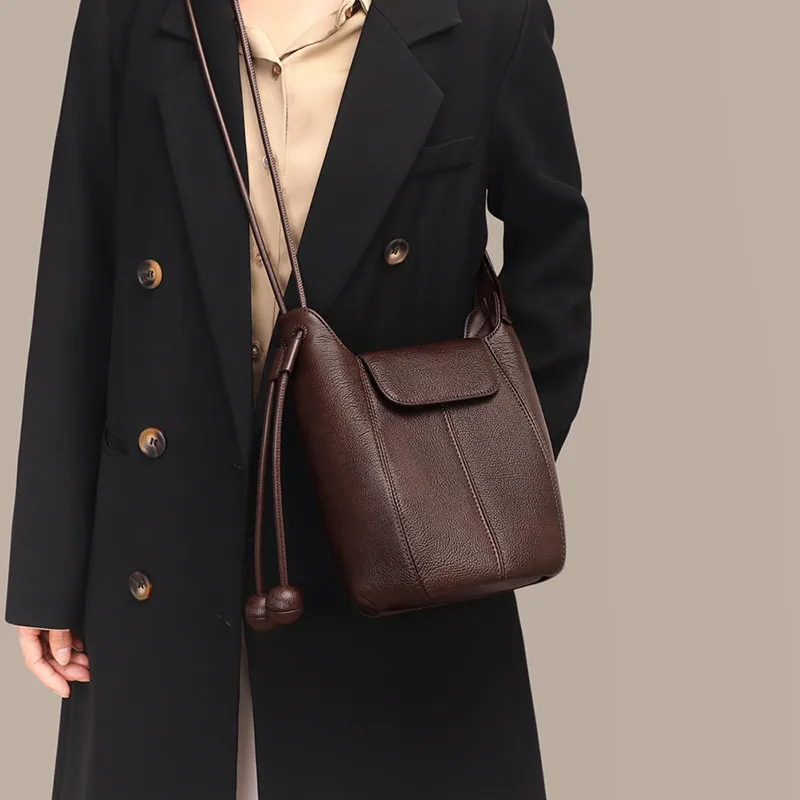 OUBOTE Коровья кожа Сумка через плечо Женская Кофейного цвета