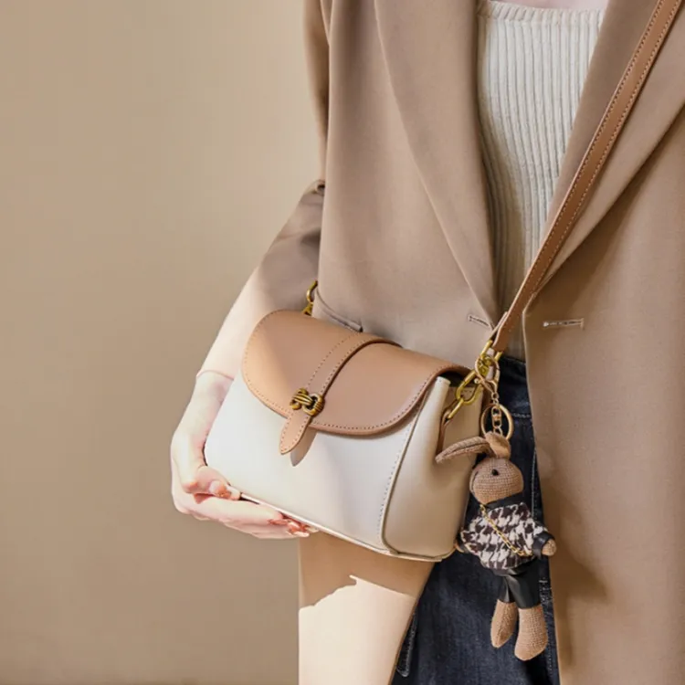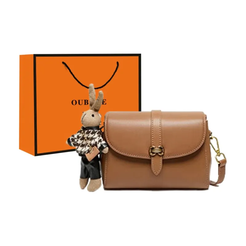 OUBOTE Корова Кожа Маленькая Квадратная Сумка Сумка через плечо Стандартная Женская Экрю и Абрикос Яшма Коричневый