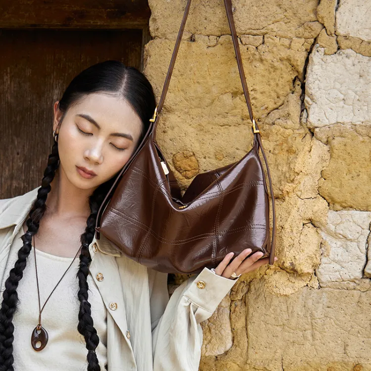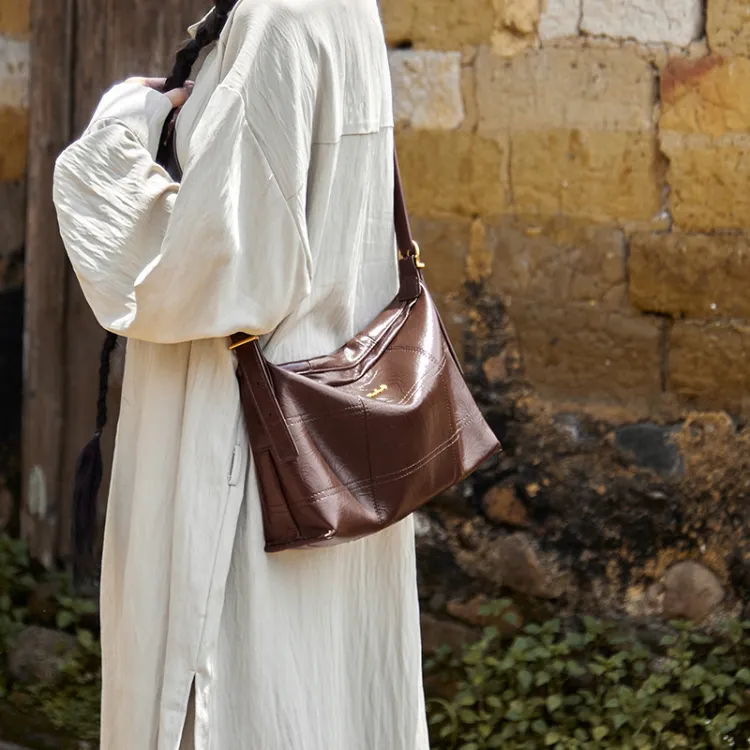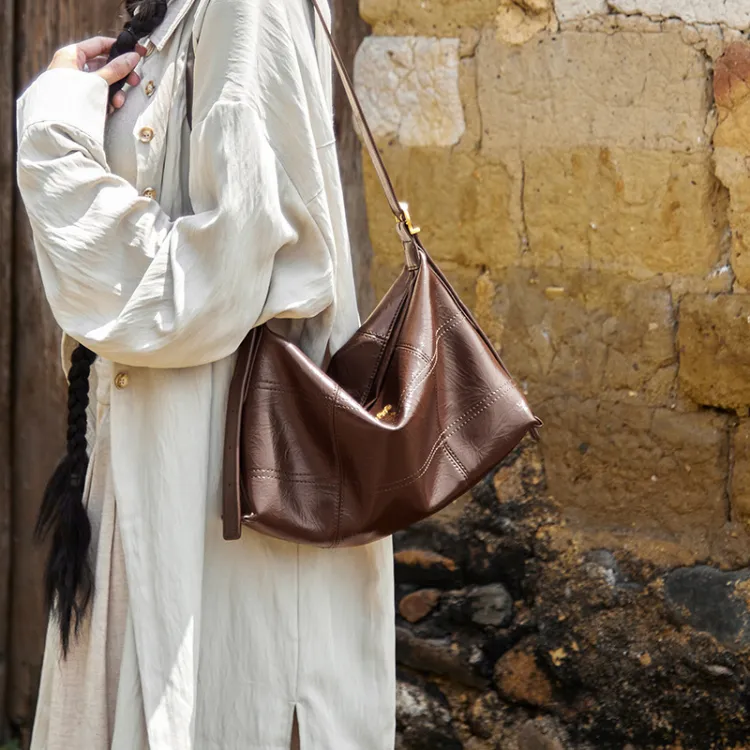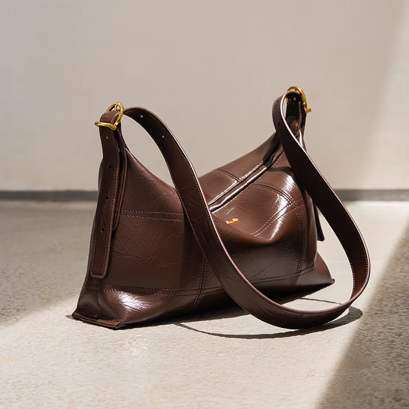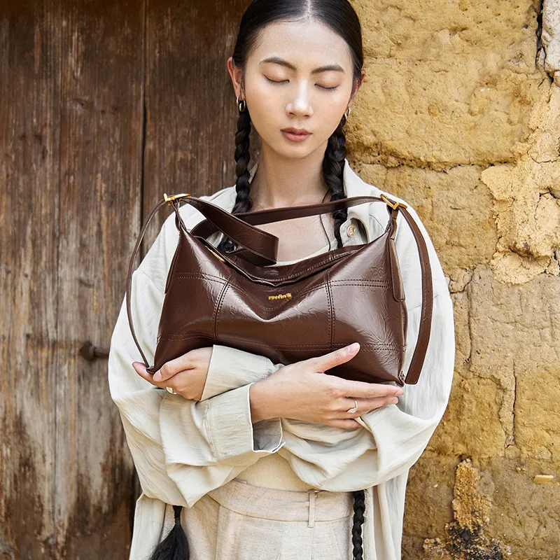 OUBOTE Синтетическая кожа Спилок коровьей кожи Сумка-тоут Сумка через плечо Стандартная Женская Кофейная Полночный черный