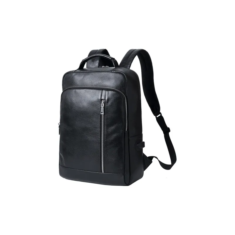 OUBOTE Рюкзак из крупнозернистой текстуры коровьей кожи стандартный мужской черный