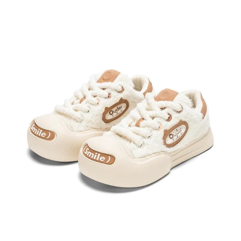 Ouder Smiler Бархат Кошка Термостойкий Устойчивый к истиранию Противоскользящий Низкий Топ Скейтборд Кроссовки Женские Белые