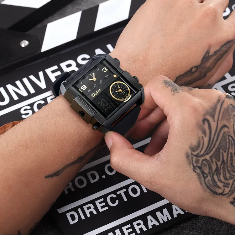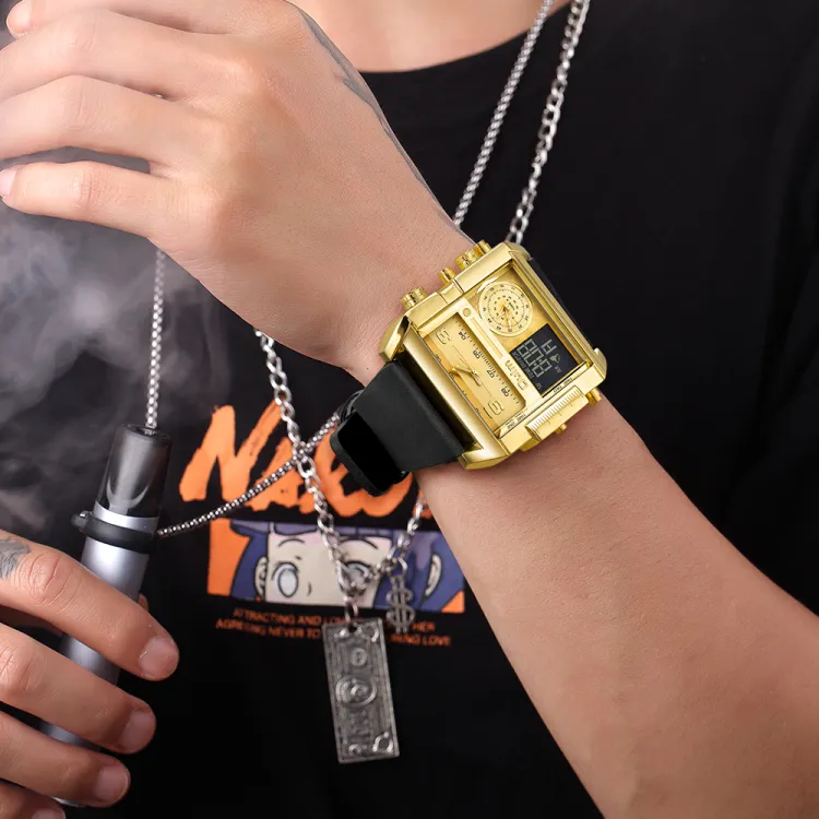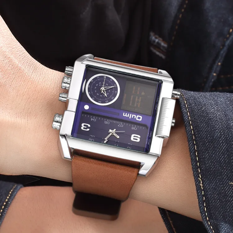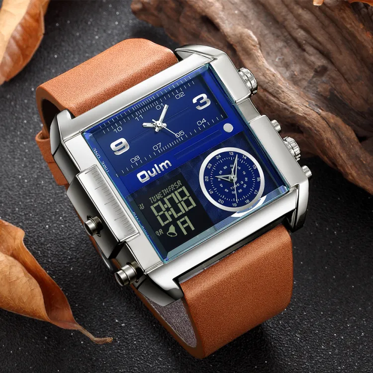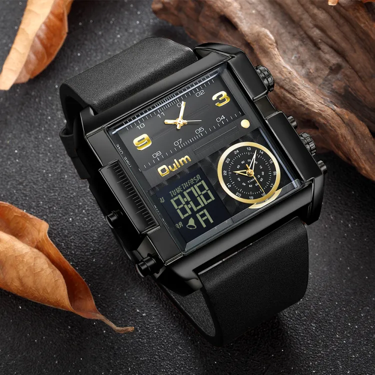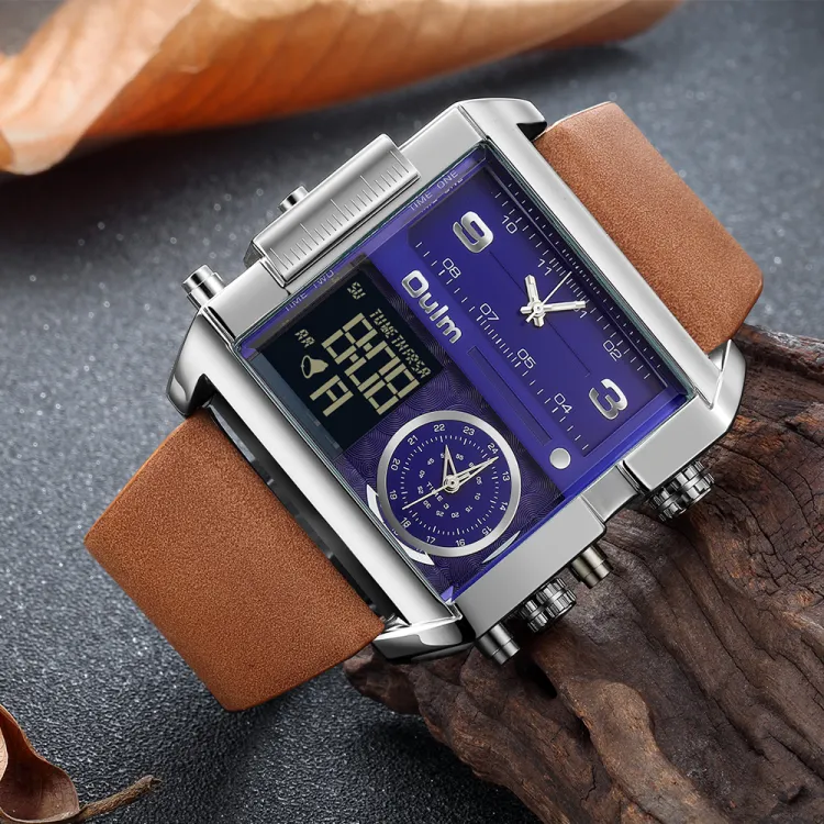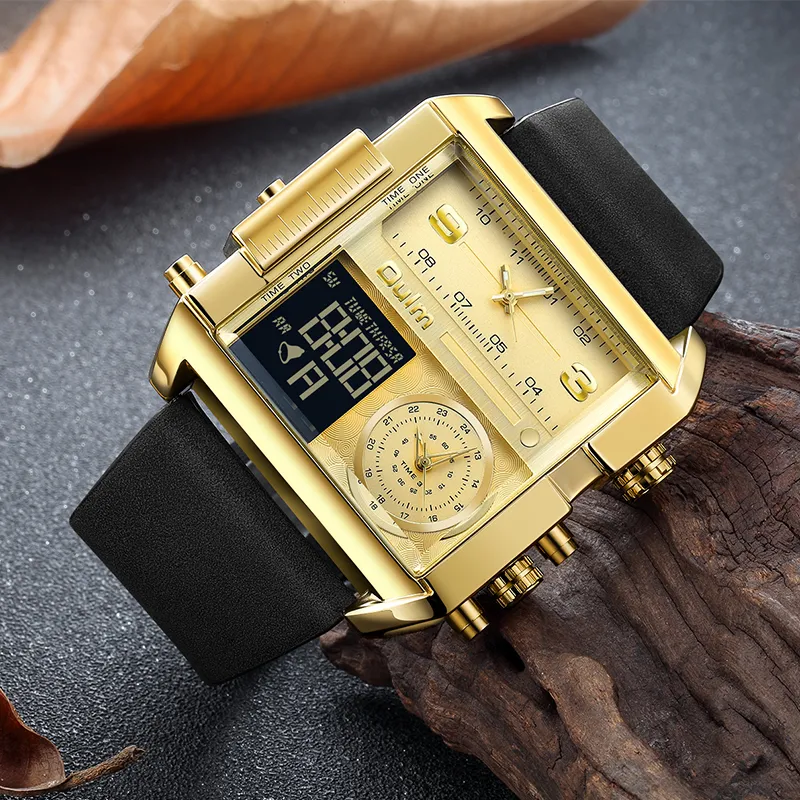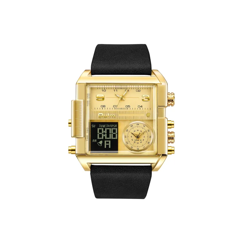 Oulm Кварцевый механизм кожаный ремешок мужские часы золотой циферблат