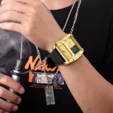 Циферблат Цвет:Циферблат с золотым цветом, черный кожаный ремешок