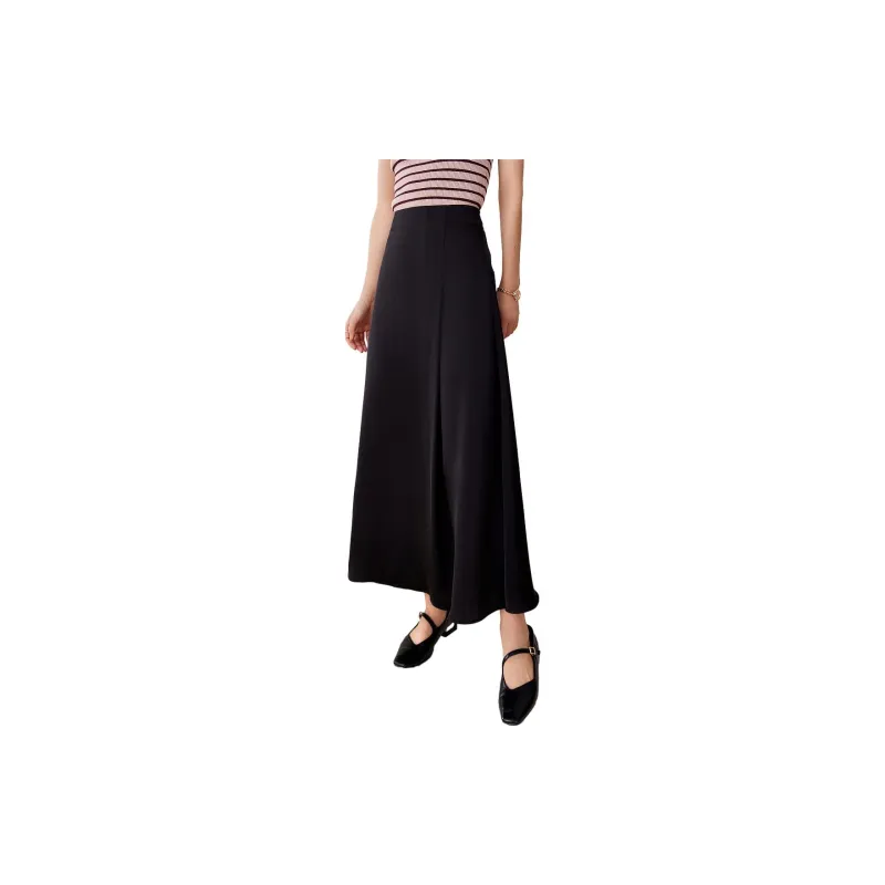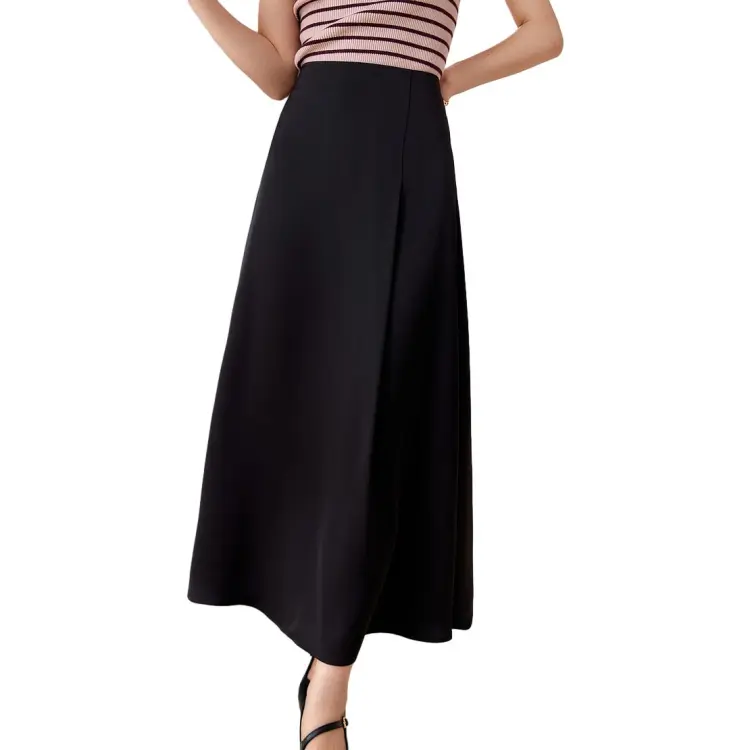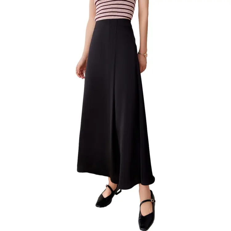 OUNIXUE Черная Женская Повседневная Длинная Юбка