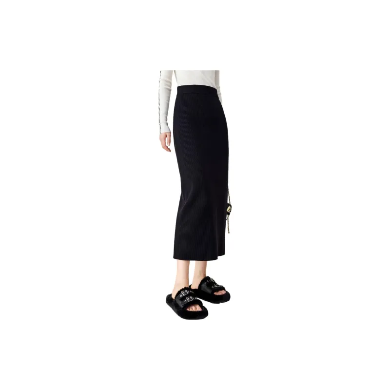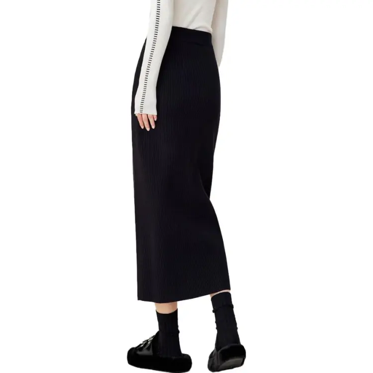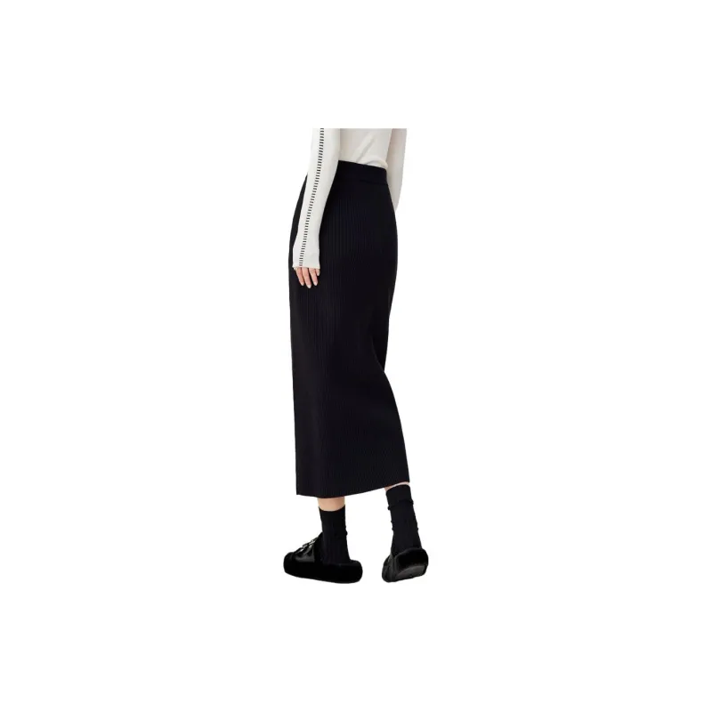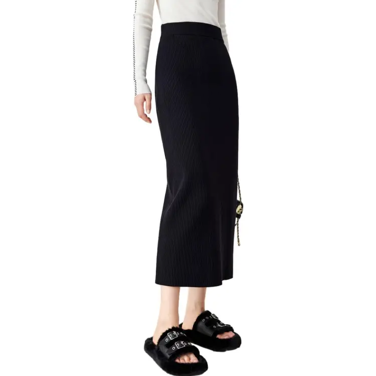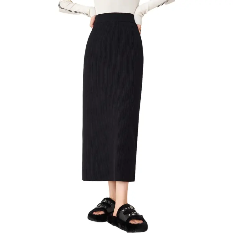 OUNIXUE Черная Женская Повседневная Длинная Юбка