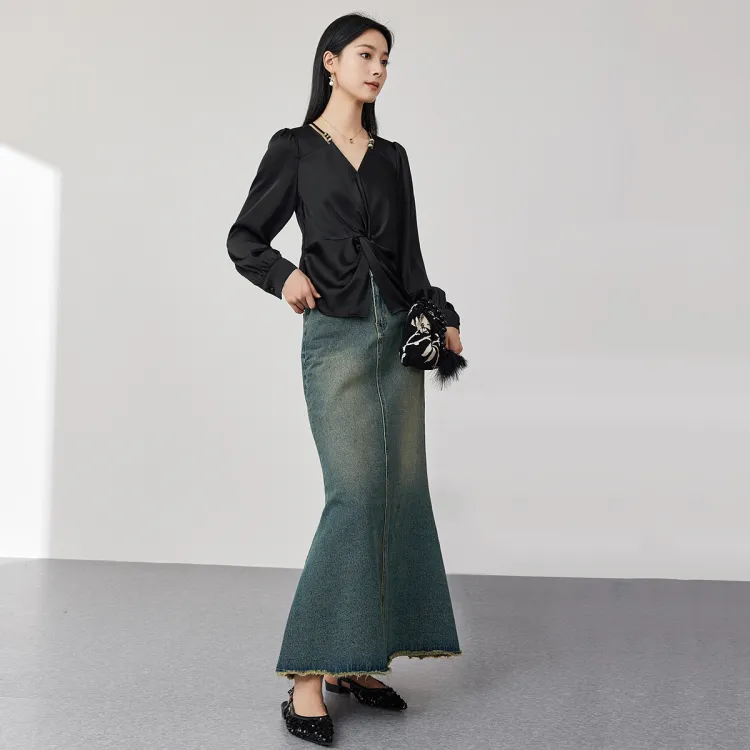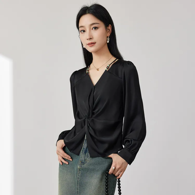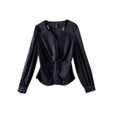 OUNIXUE Шифон Рубашка Женская Черная