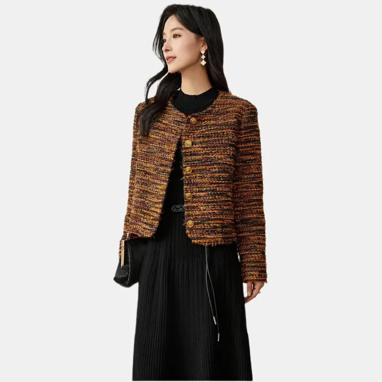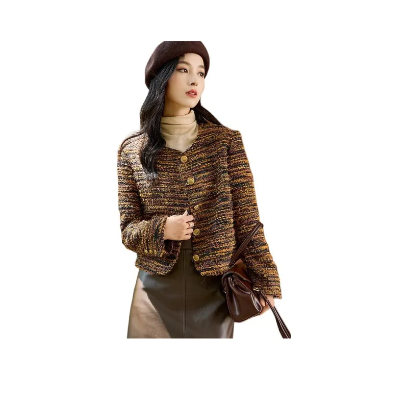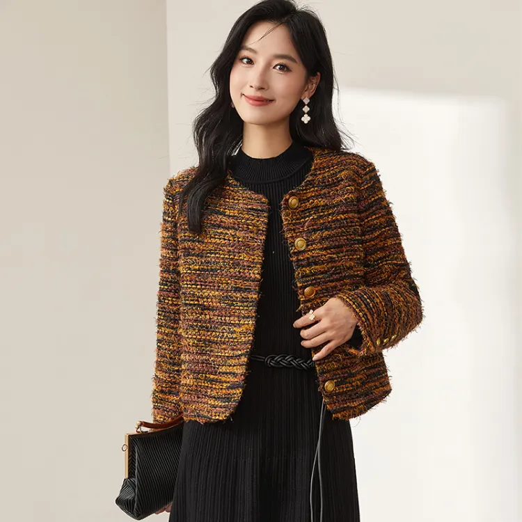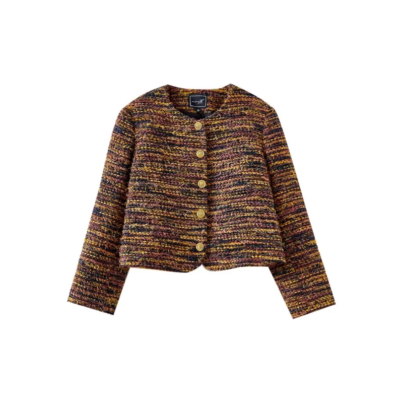 OUNIXUE Cropped Coat Women's Yellow Brown OUNIXUE Укороченное пальто женское желтый коричневый