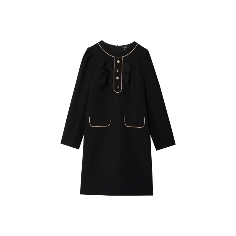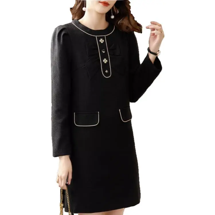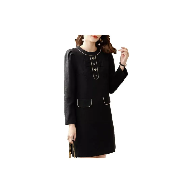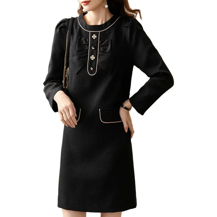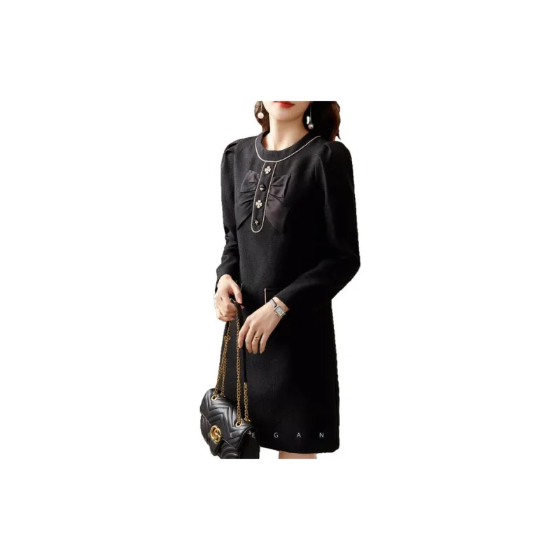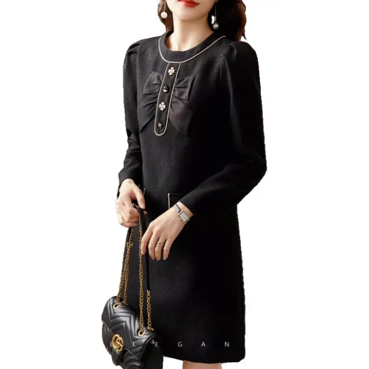 OUNIXUE Черное Женское Длинное Платье с Рукавами
