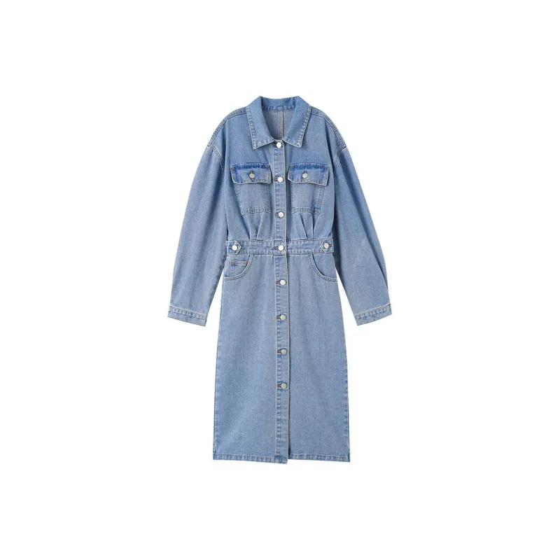 OUNIXUE Синий Женские Длинные Платья с Рукавами