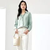 OUNIXUE Рубашка Женская Серая Зеленая