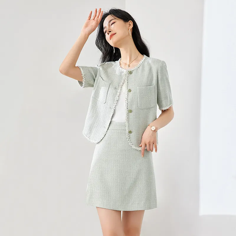 OUNIXUE Комплект с юбкой Женские Светло-серый зеленый