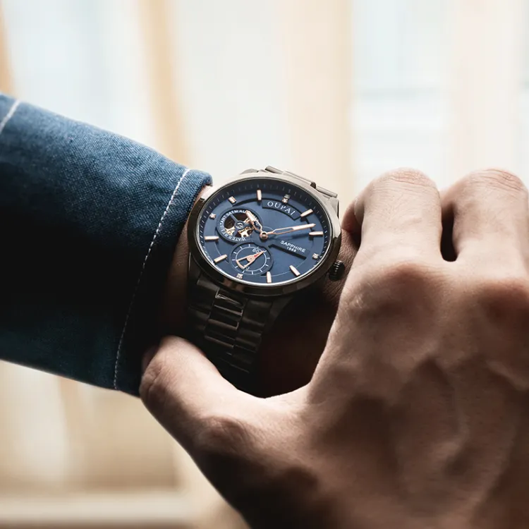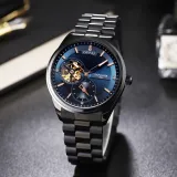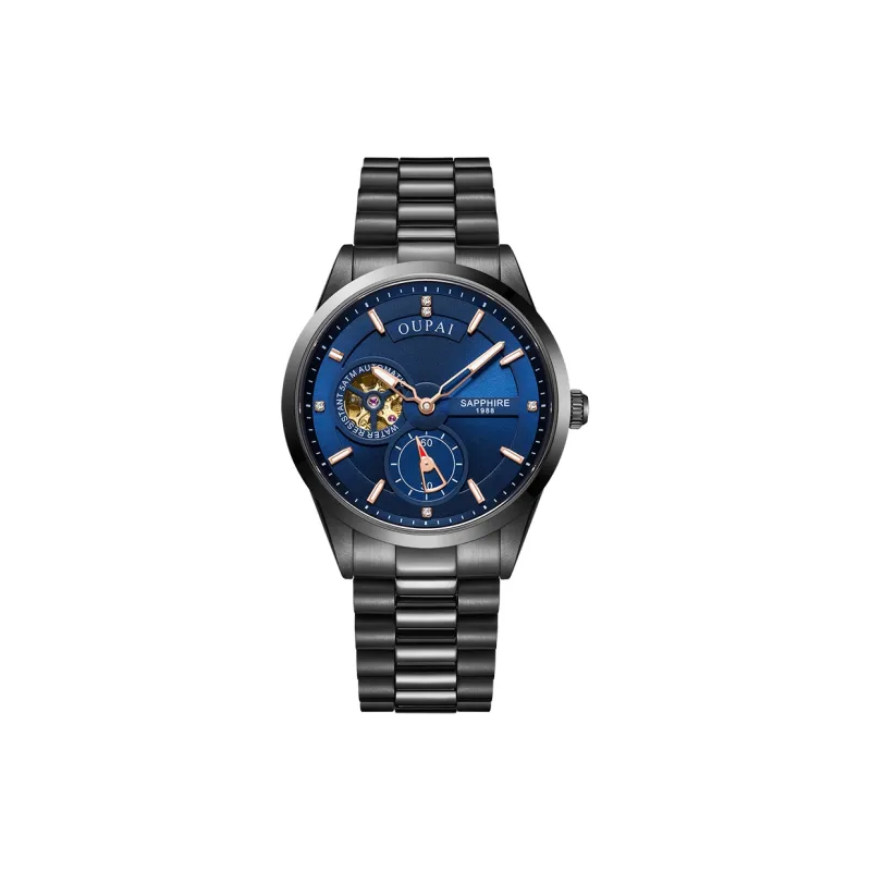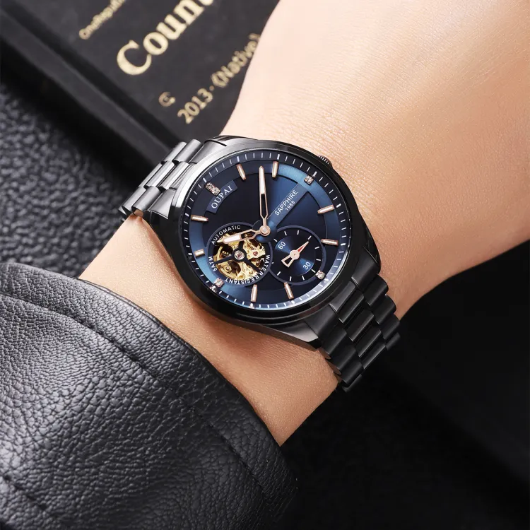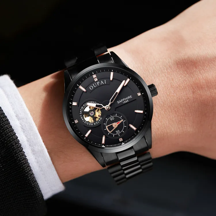 OUPAI Механический механизм ремешок из нержавеющей стали мужские часы черный циферблат модель OP80057