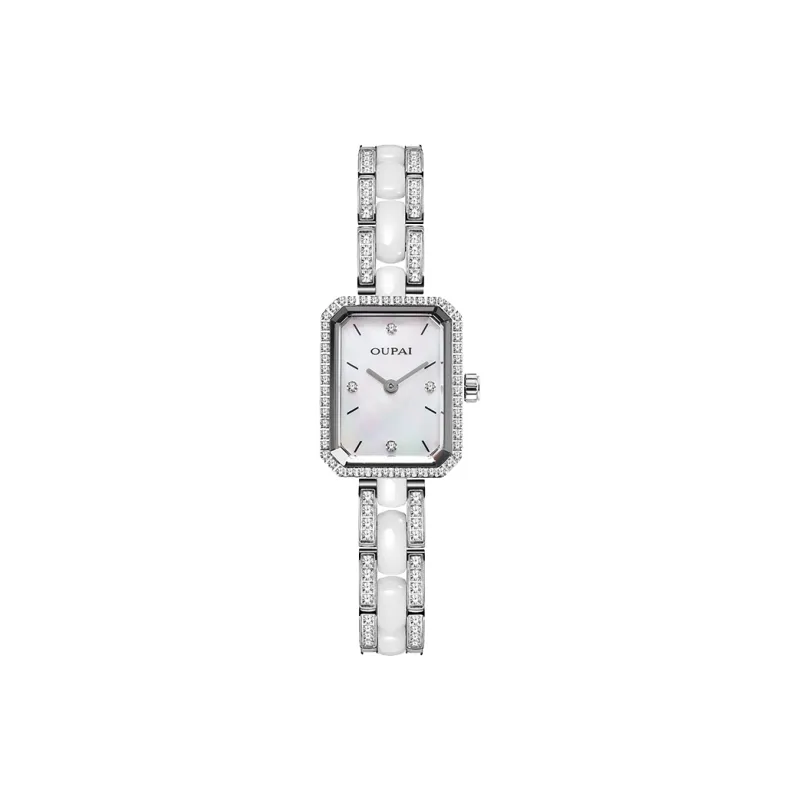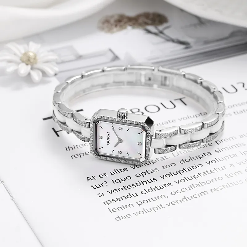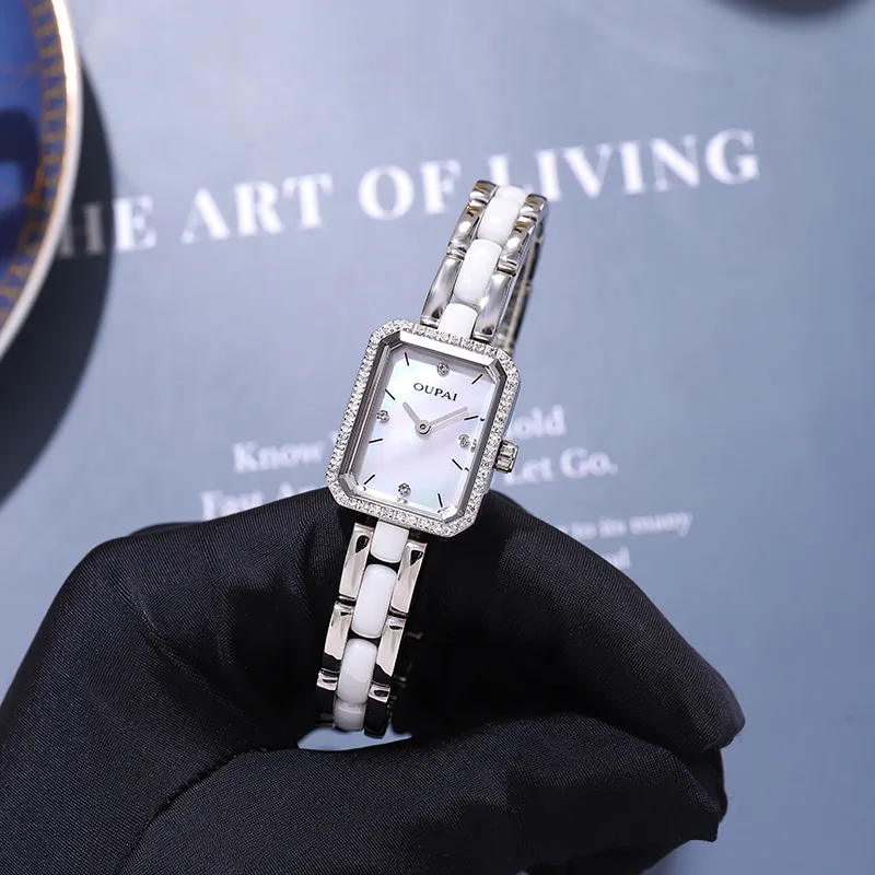 OUPAI Кварцевый механизм керамика ремешок часы женский черный циферблат