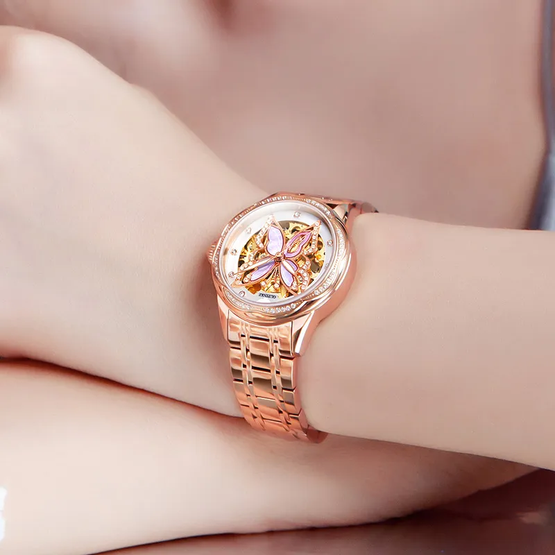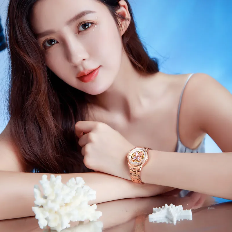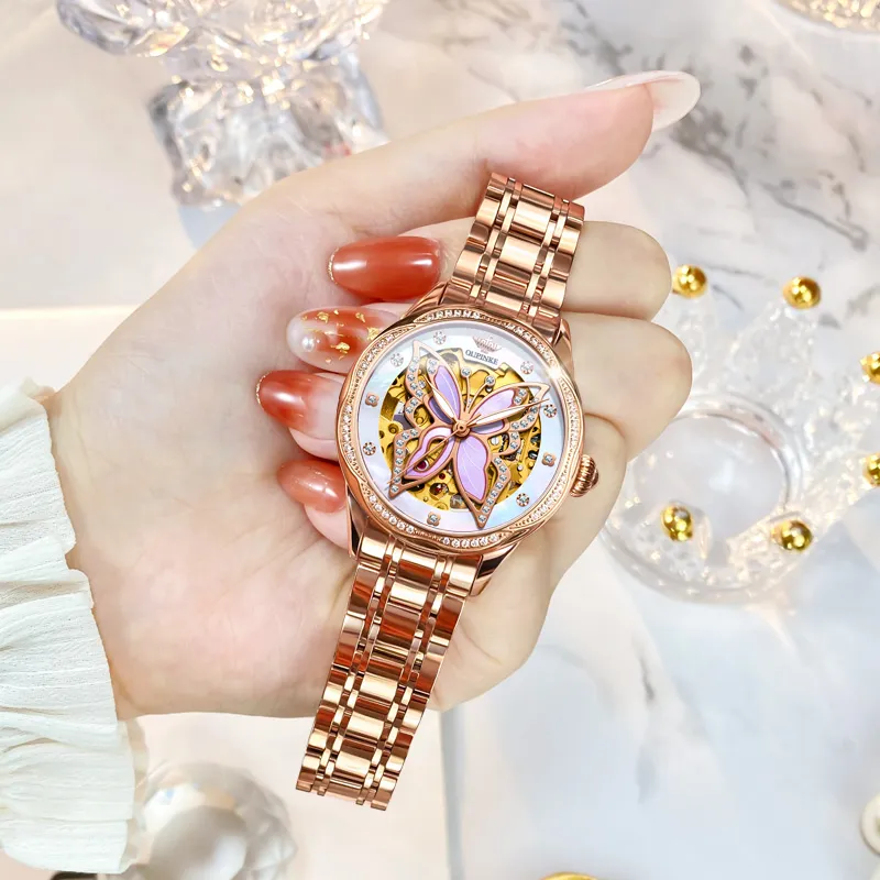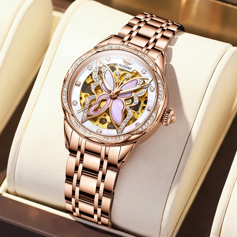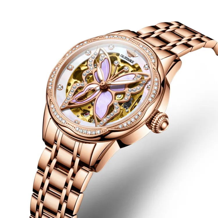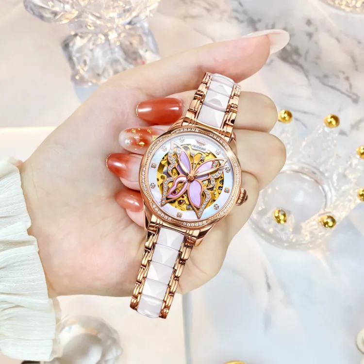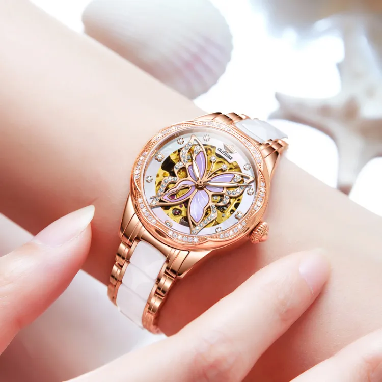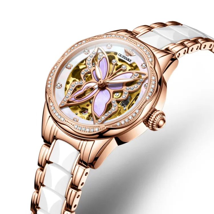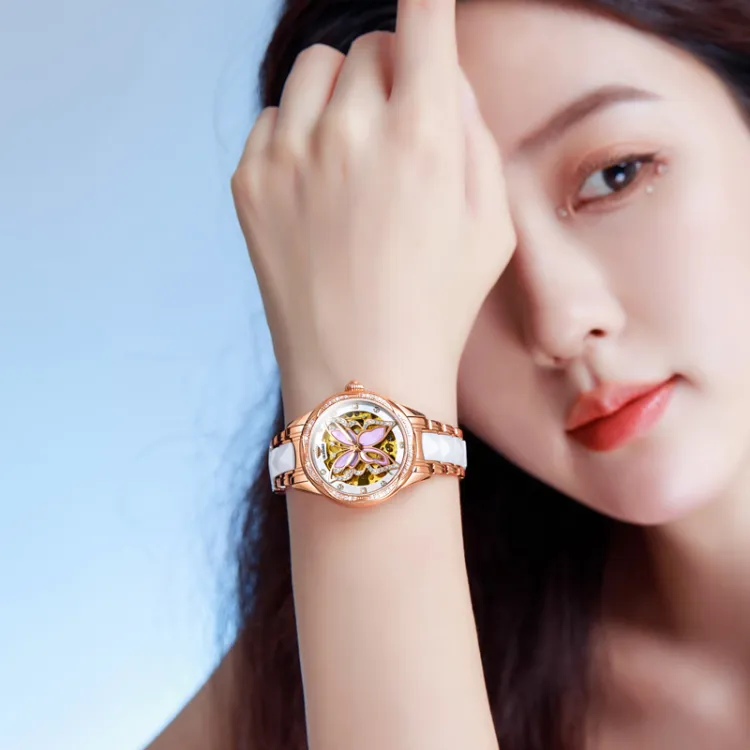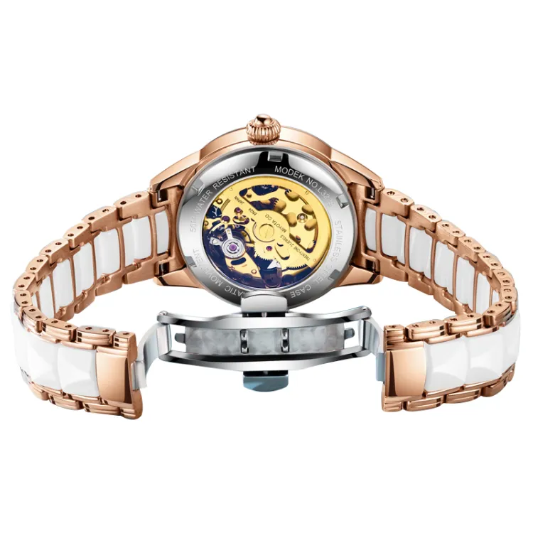 Oupinke AIR BORN Collection Ceramic Rhinestone Embellished Mechanical механизм Часы Женские Белый циферблат