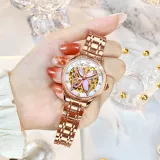 Комплект:Стальной браслет, корпус розовый, циферблат белый